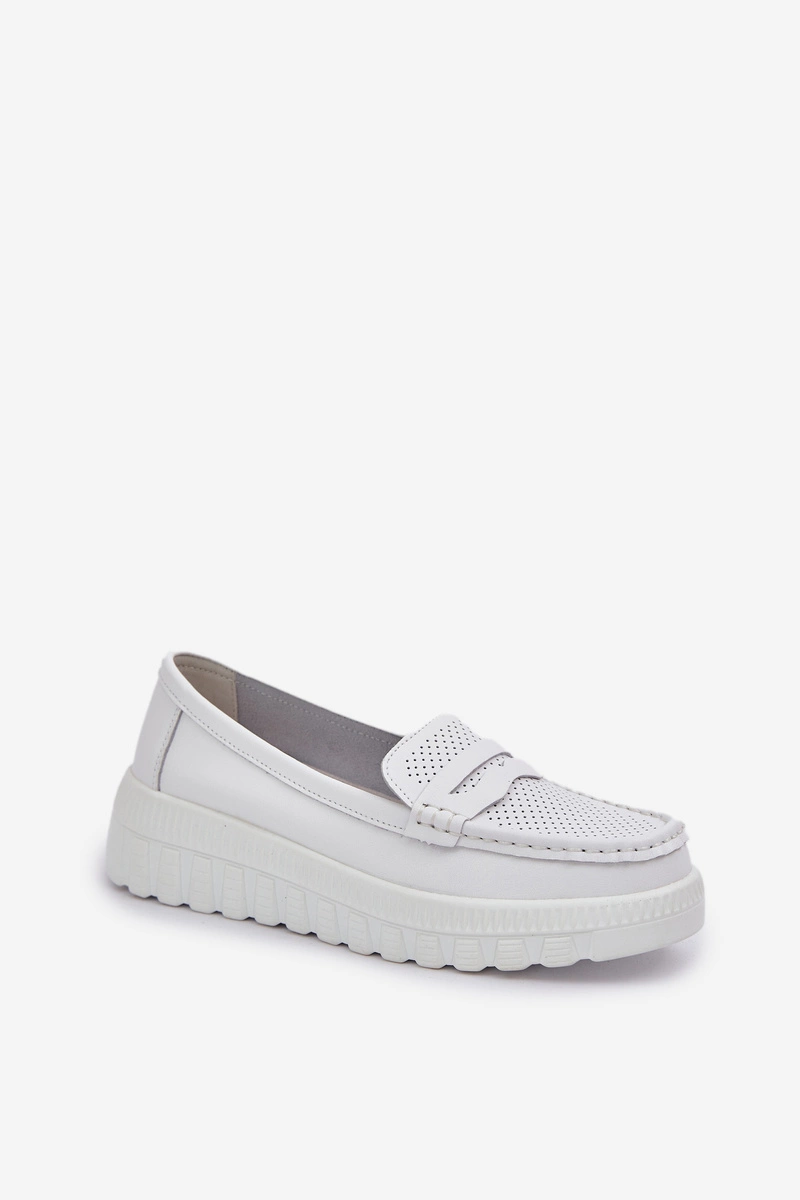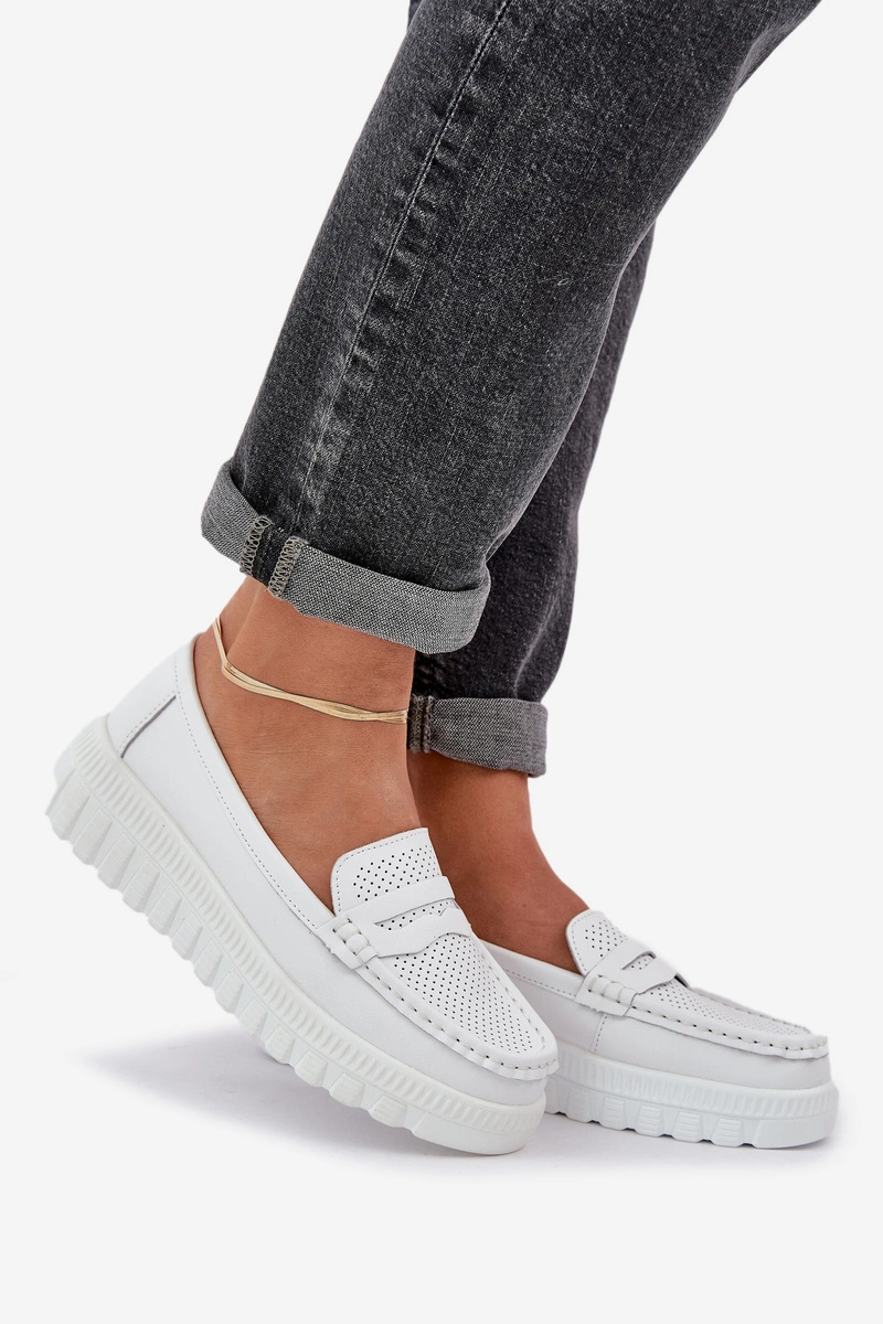 Skórzane Mokasyny Damskie Na Platformie I Koturnie Białe Elanindel