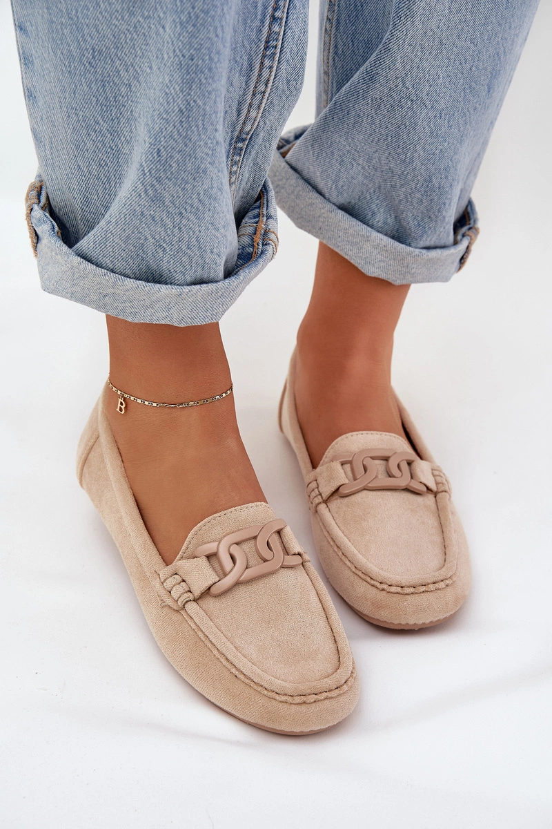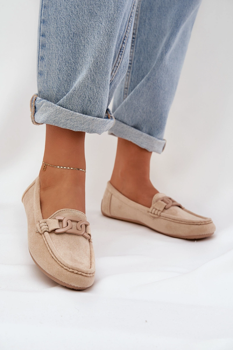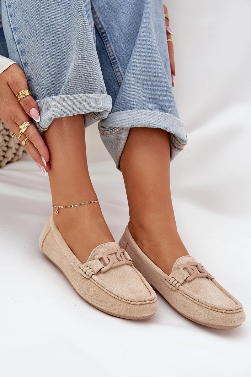 Damskie Eko Zamszowe Mokasyny Z Ozdobą Beżowe Seathra