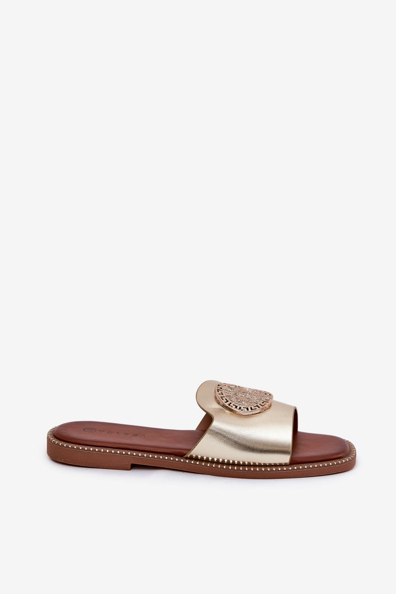 Eko Skórzane Klapki Na Płaskim Obcasie Z Ozdoba Złote Tatereia