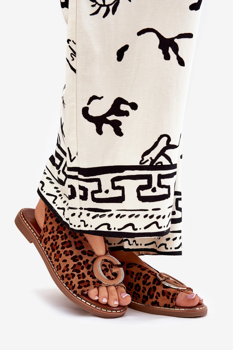 Płaskie Sandały Z Ozdobą Panterka Brązowe Haliones