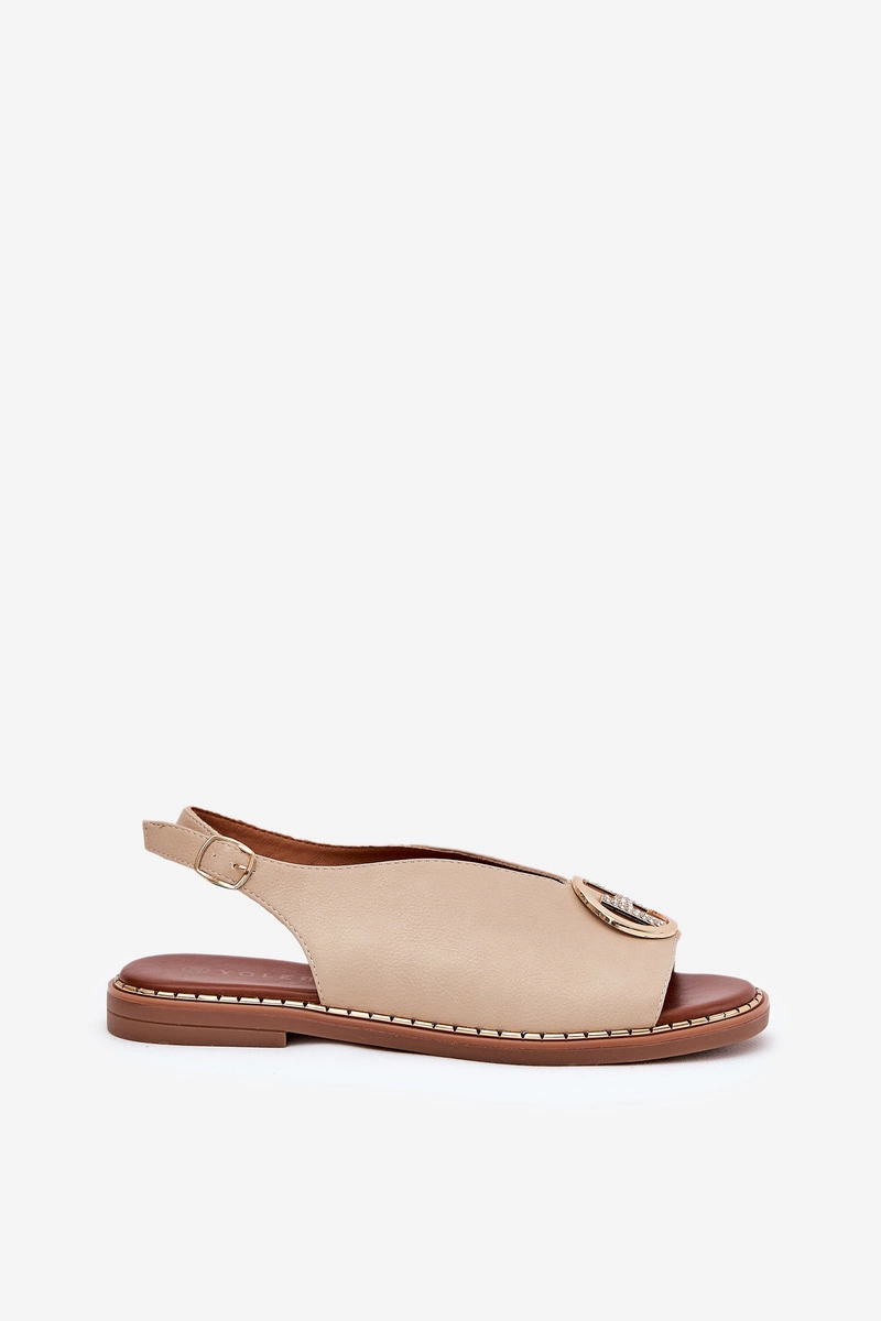 Płaskie Eleganckie Sandały Z Ozdobą Beżowe Iseliria