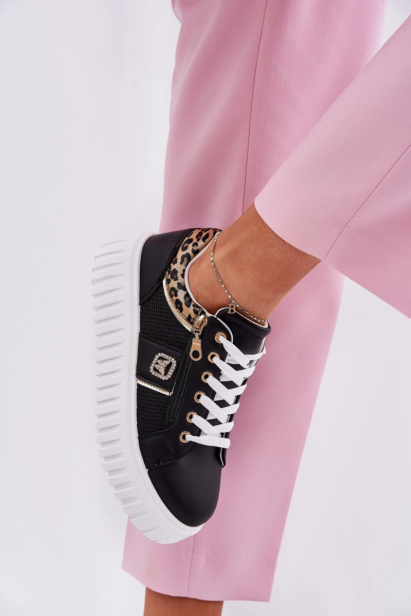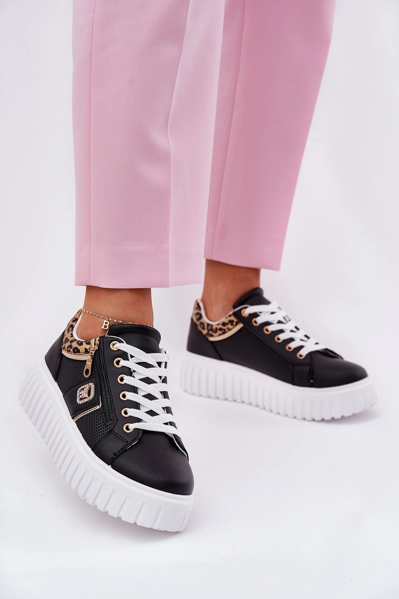 Buty Sportowe Damskie Na Platformie Z Eko Skóry Panterka Czarne Velionna