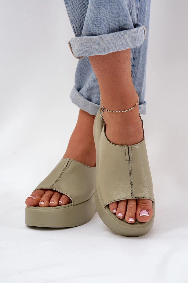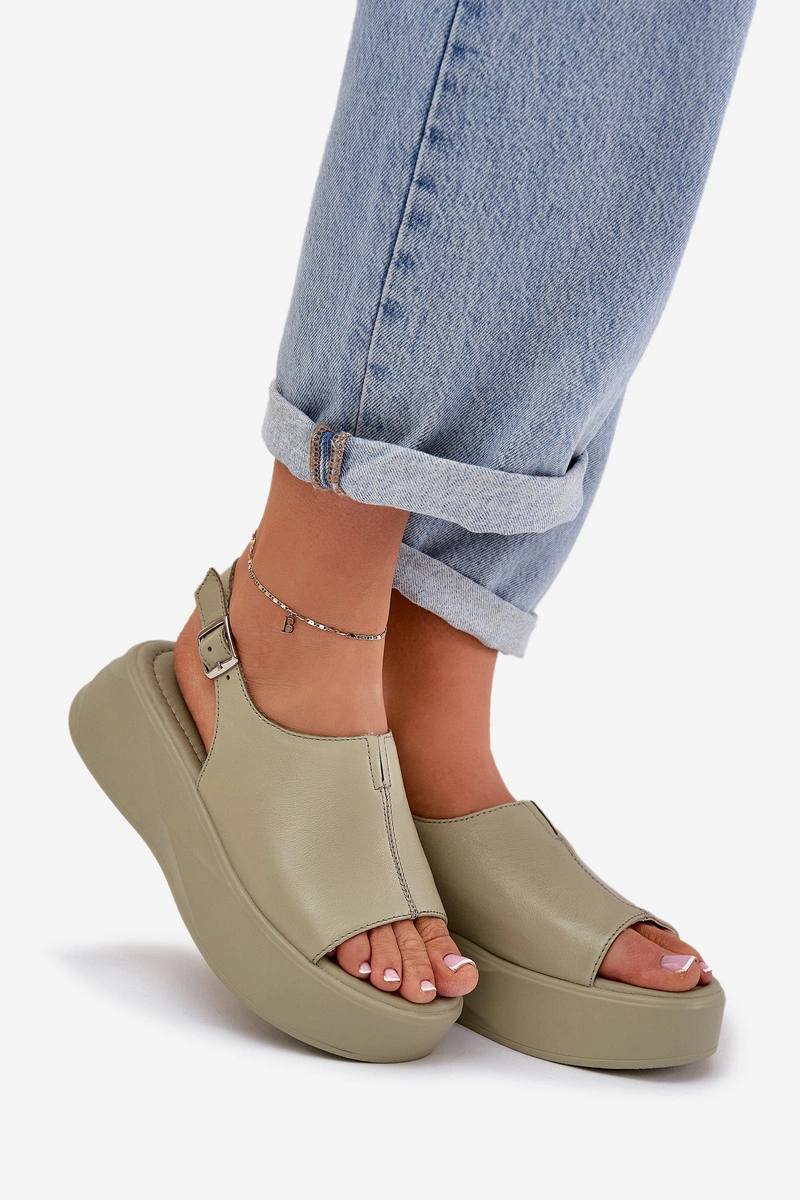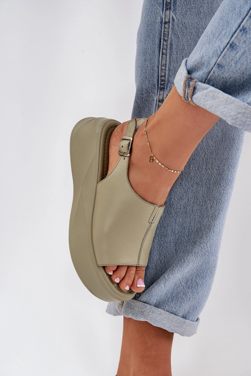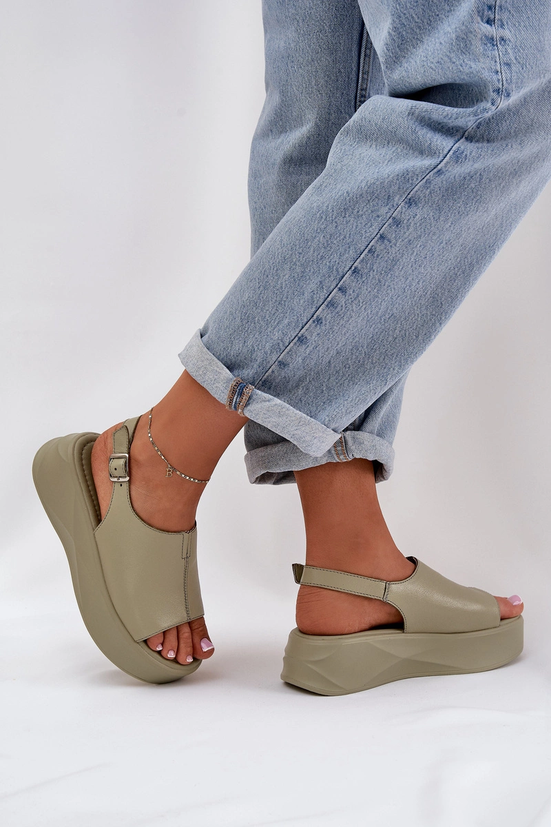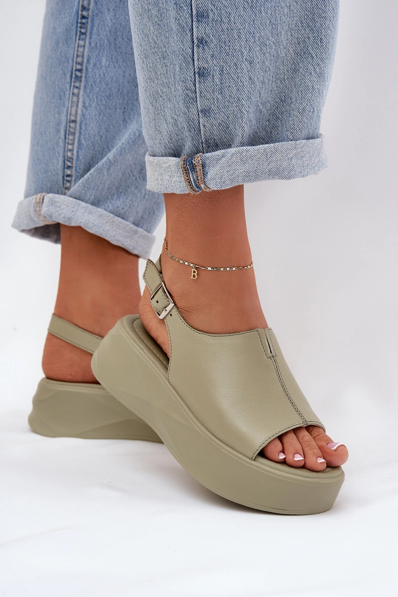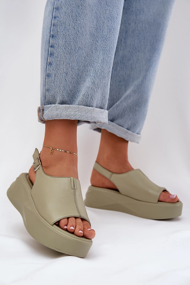Skórzane Sandały Damskie Na Platformie D&A SJ2301-2 Zielone