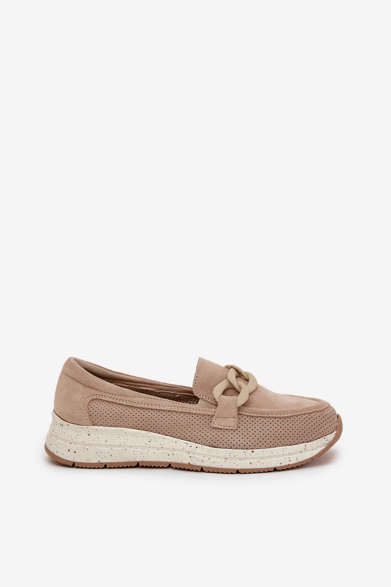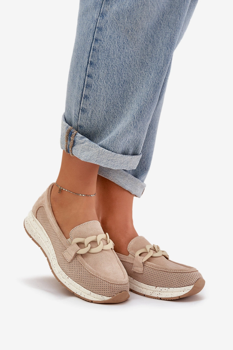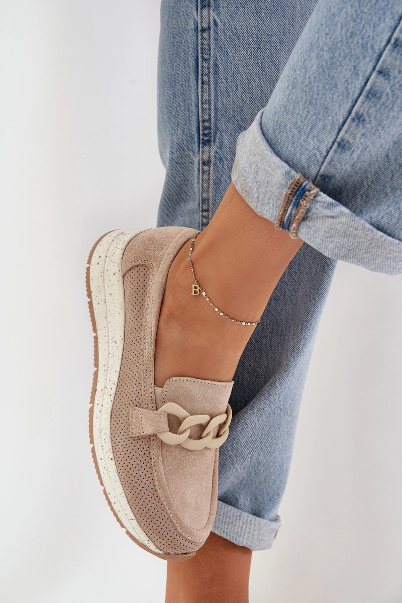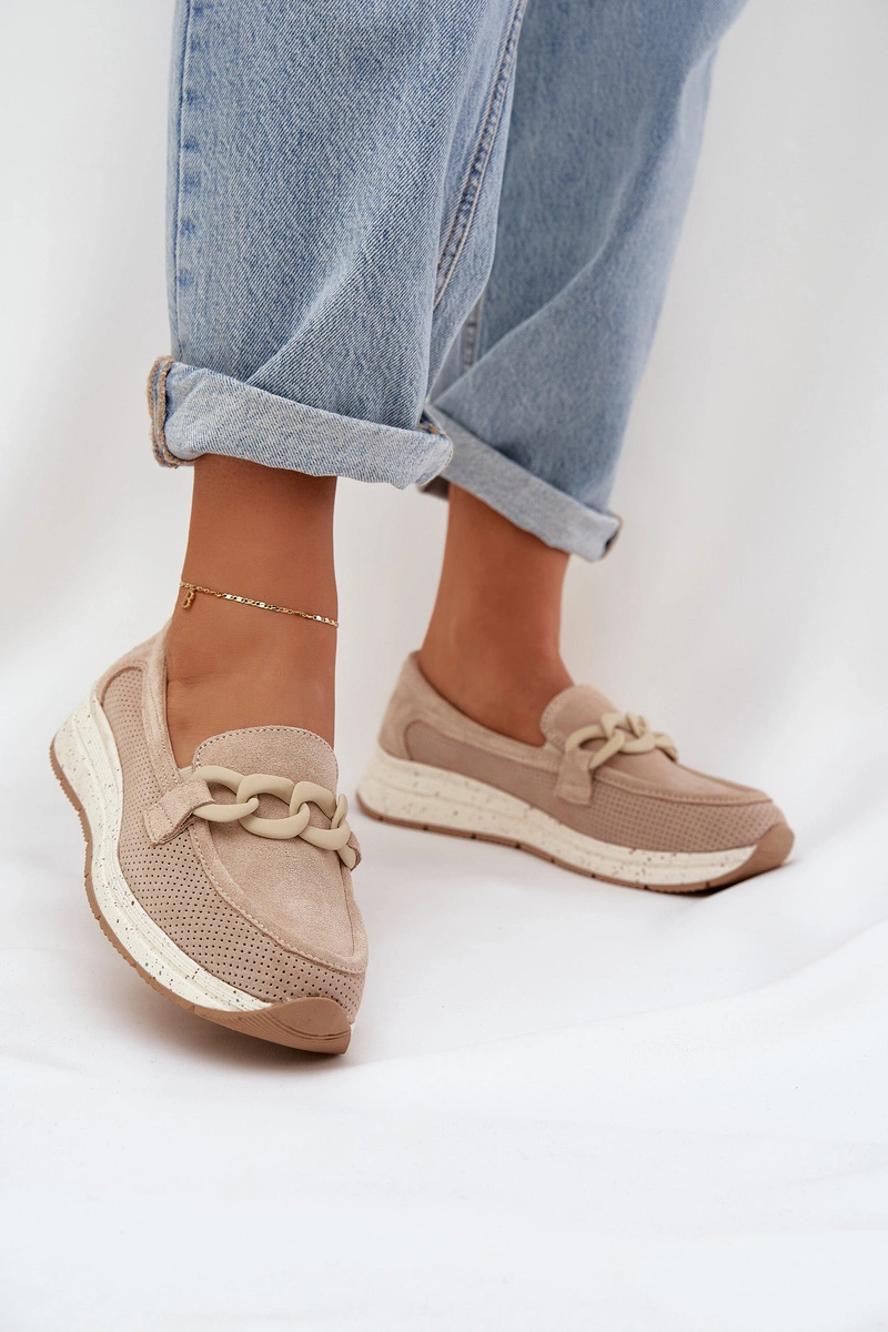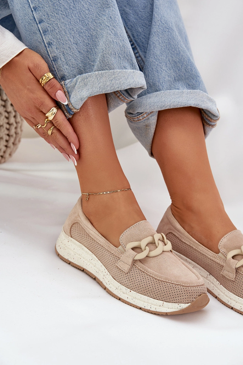 Zamszowe Mokasyny Na Platformie Z Łańcuchem D&A TW552 Beżowe