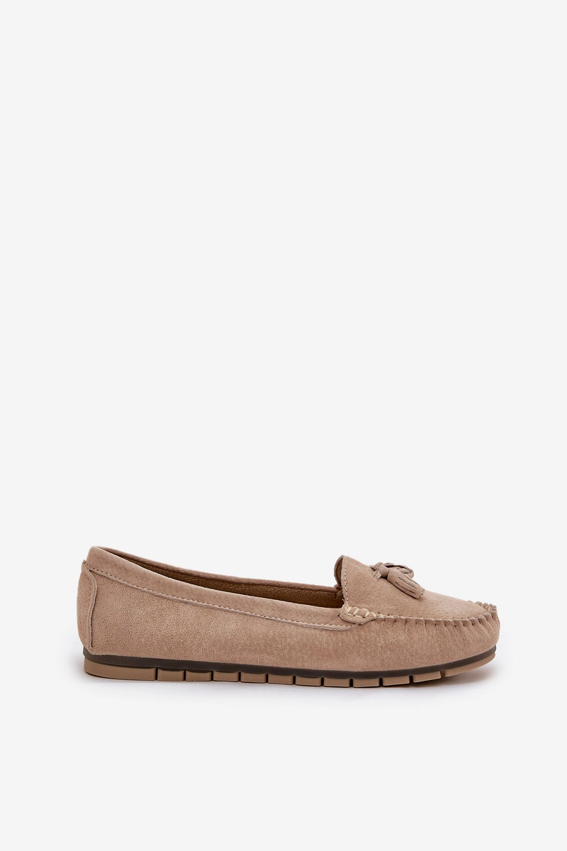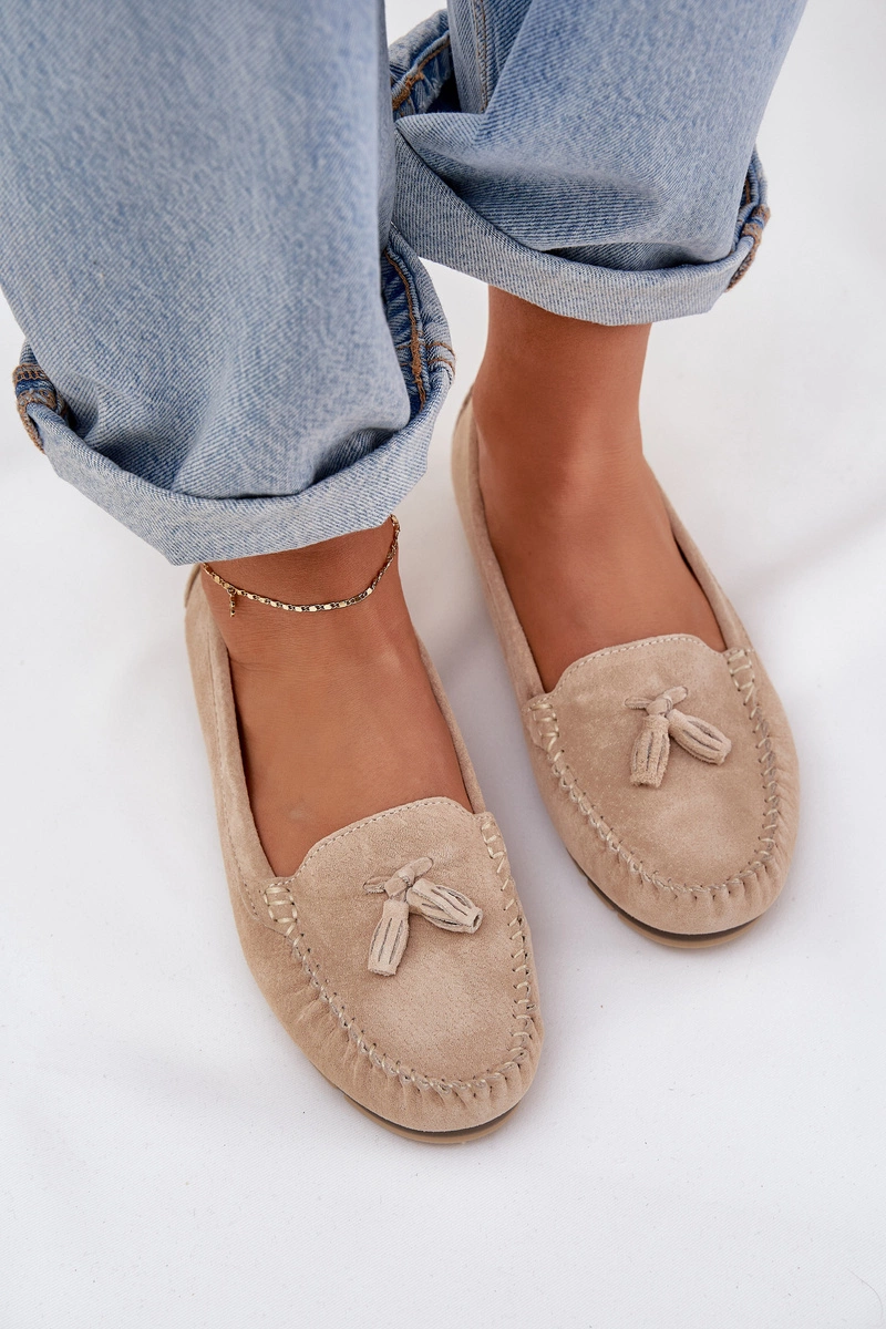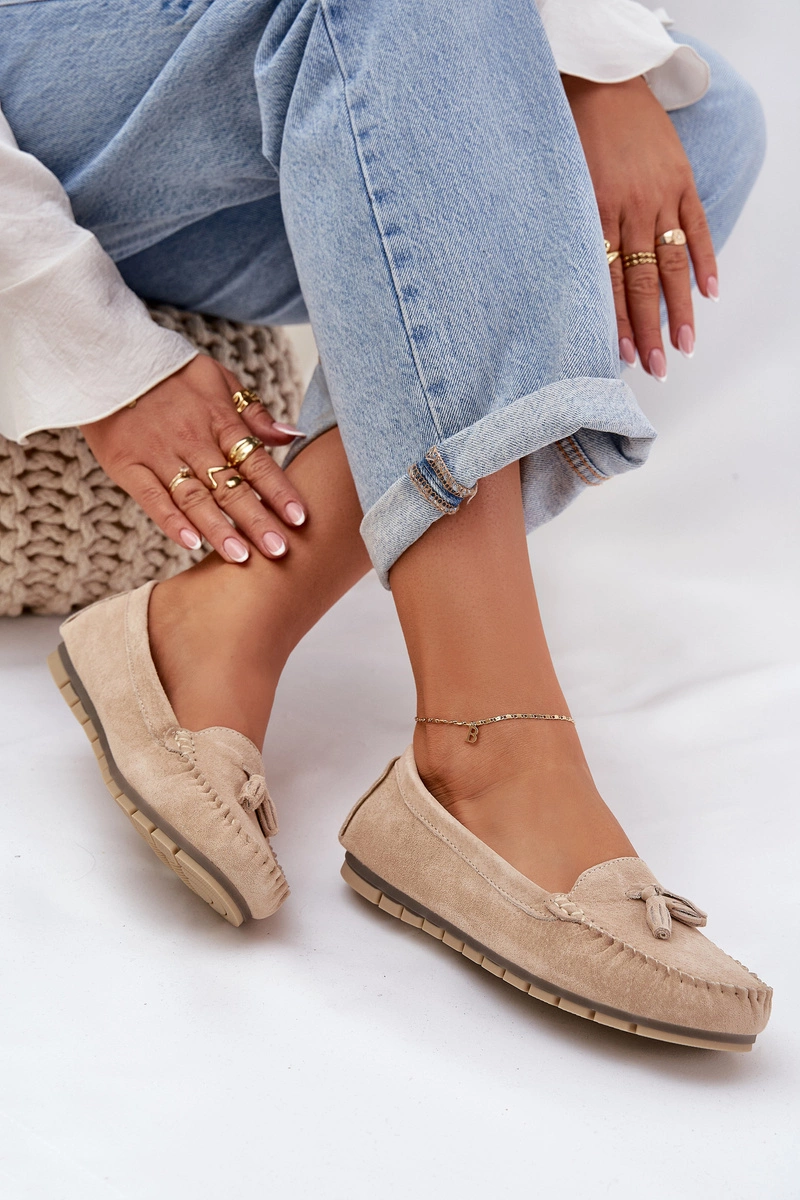 Damskie Płaskie Klasyczne Zamszowe Mokasyny S.Barski LR51-548 Beżowe