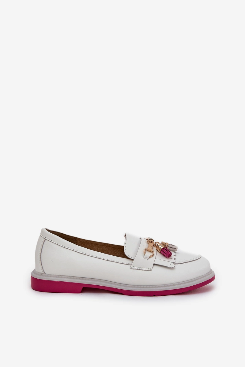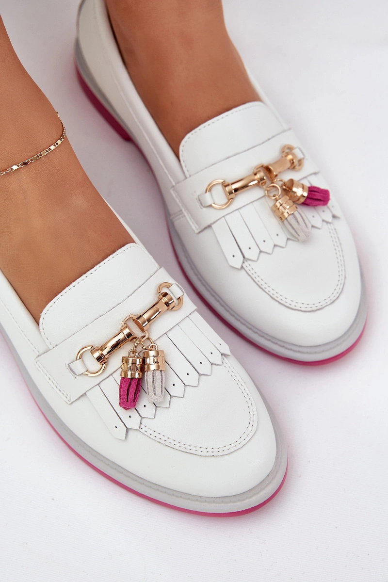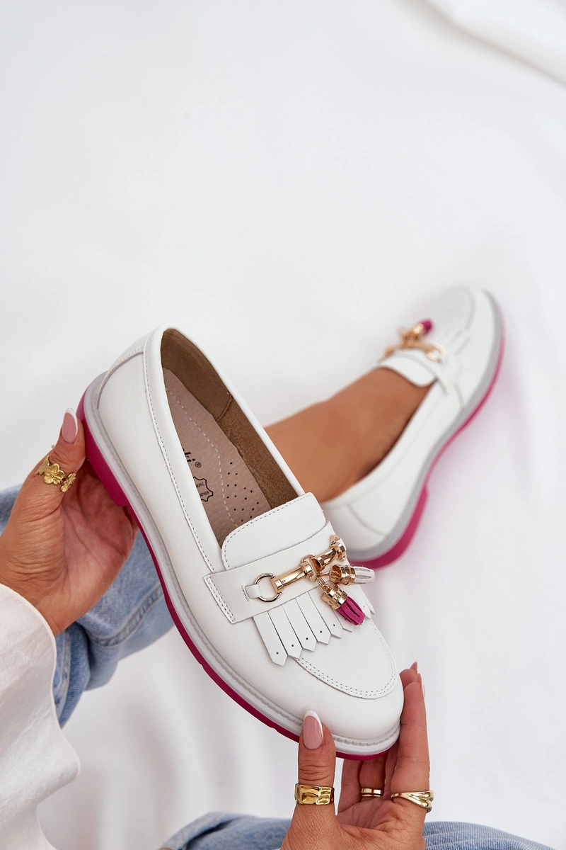 Skórzane Eleganckie Mokasyny Na Płaskim Obcasie S.Barski LR51-768 Białe