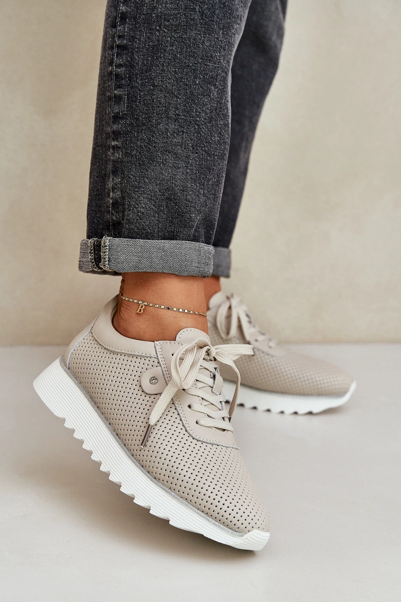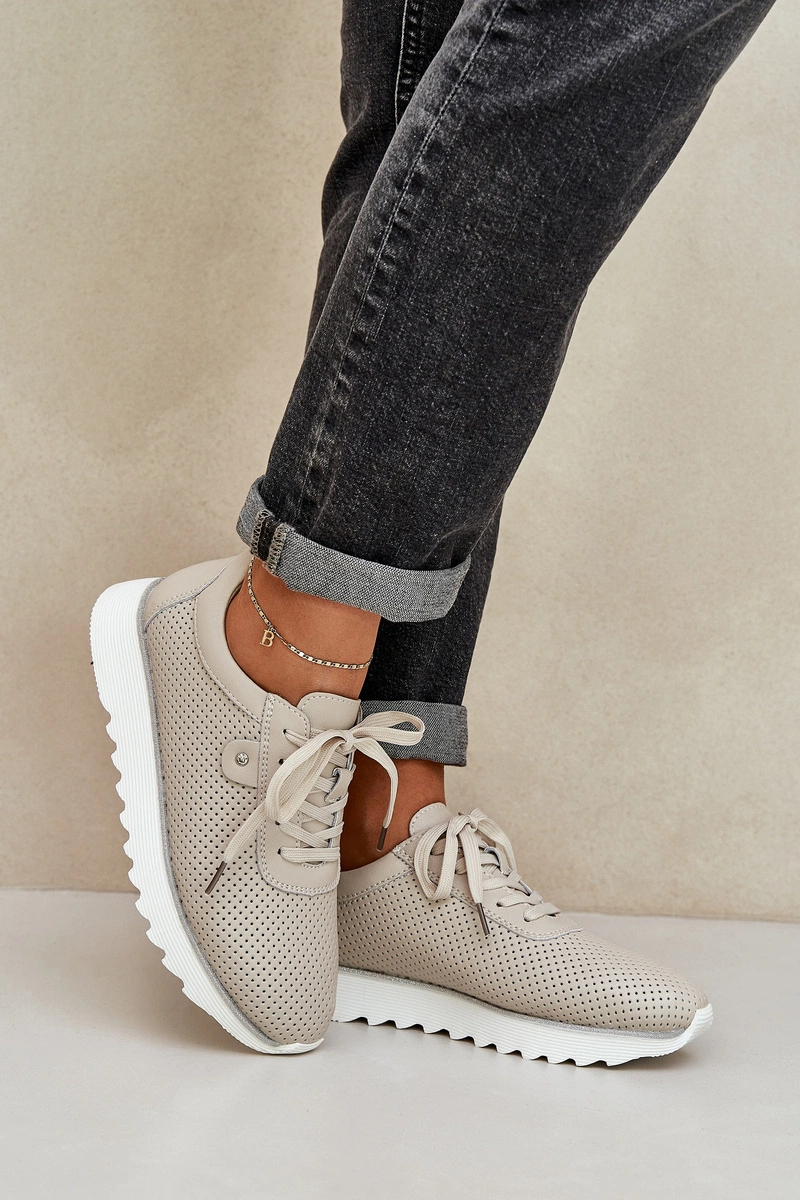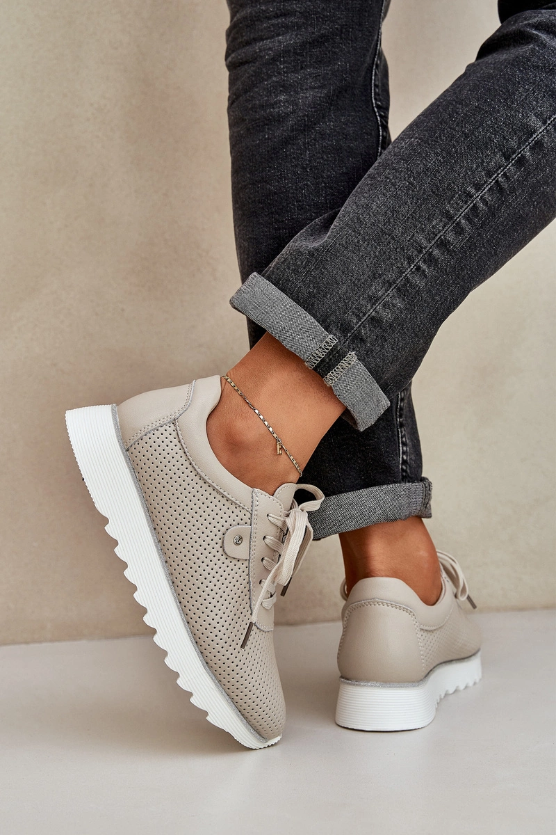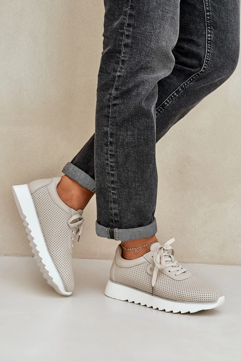 Buty sportowe damskie z naturalnej skóry to połączenie elegancji i wygody. Osadzone na platformie z delikatnym brokatem, dodają blasku każdej stylizacji. Lekkie i komfortowe, zapewniają wygodę przez cały dzień. Skórzana wkładka gwarantuje odpowiednią amortyzację i komfort noszenia. Te buty będą doskonałym wyborem na co dzień, łącząc modny wygląd z funkcjonalnością. Przy wyborze rozmiaru prosimy sugerować się tabelą rozmiarów.