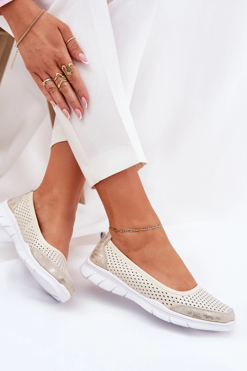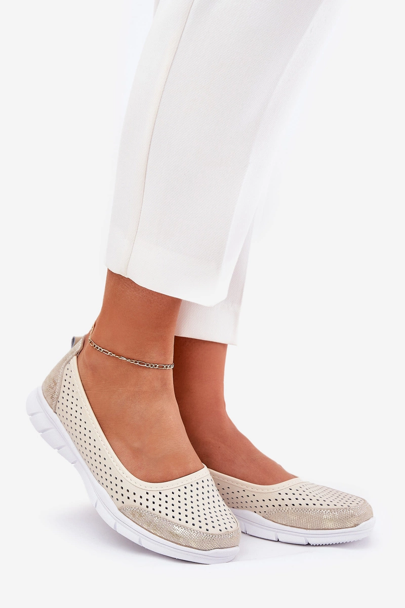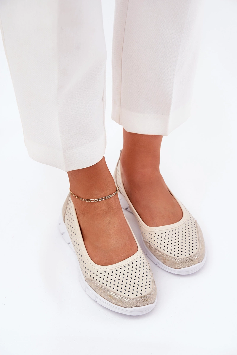 Skórzane Ażurowe Baleriny Vinceza 95323 Beżowe