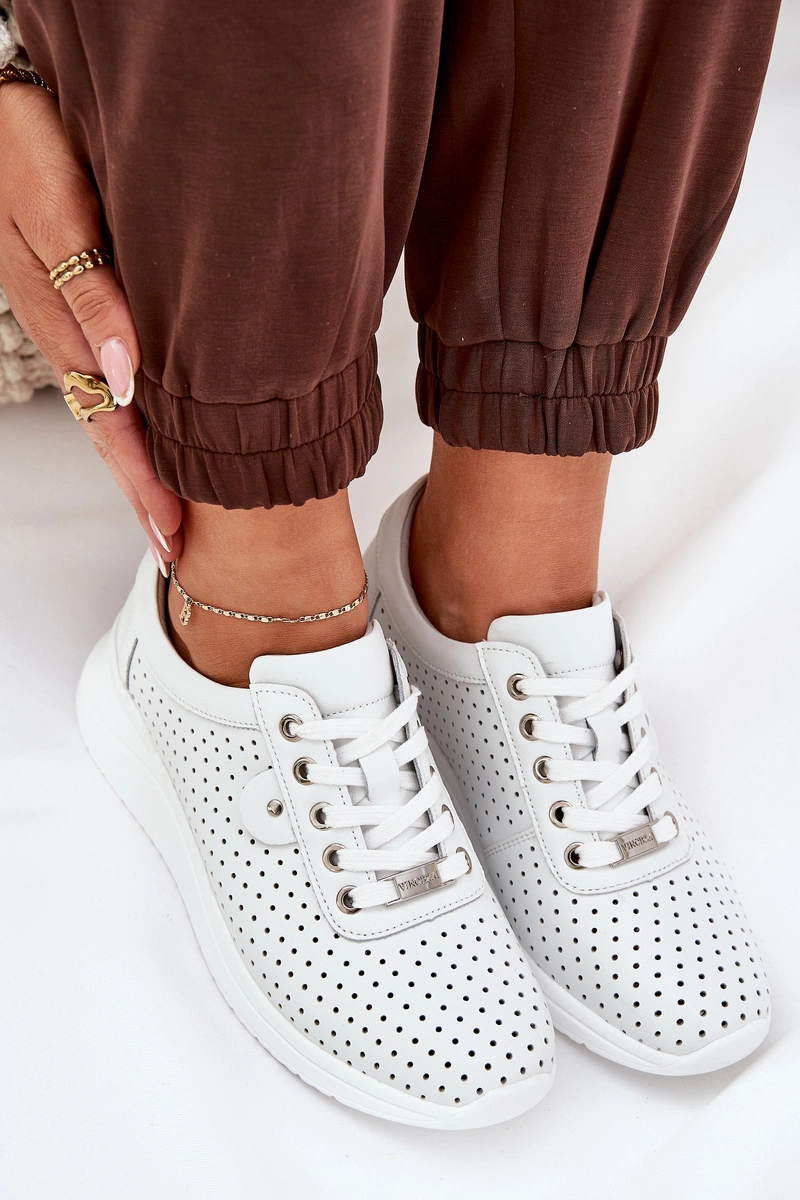Damskie Skórzane Buty Sportowe Vinceza 79532 Białe