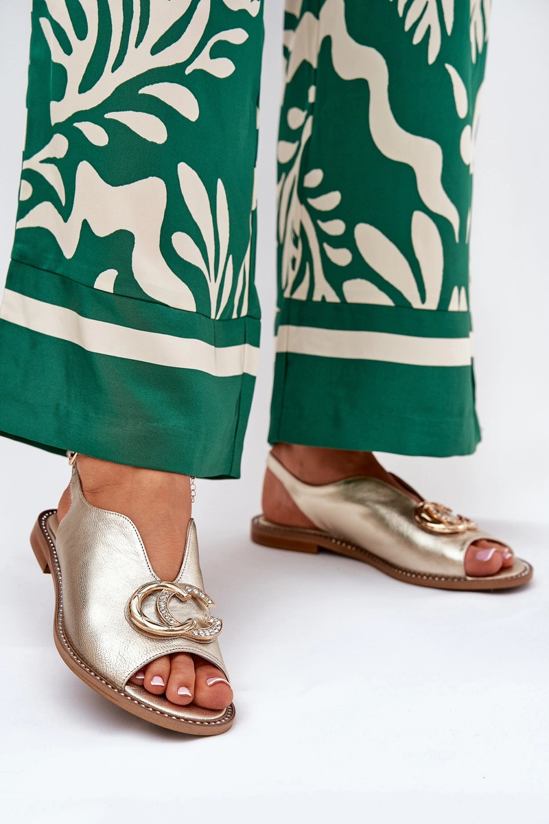 Skórzane Sandały Na Płaskim Obcasie Z Ozdobą Laura Messi 2865 Złote