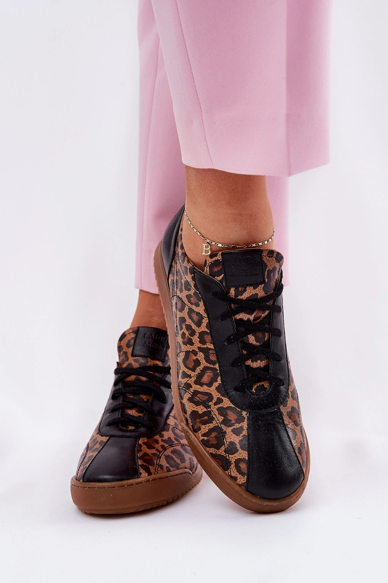Skórzane Buty Sportowe Damskie W Panterkę Laura Messi 2935 Brązowe