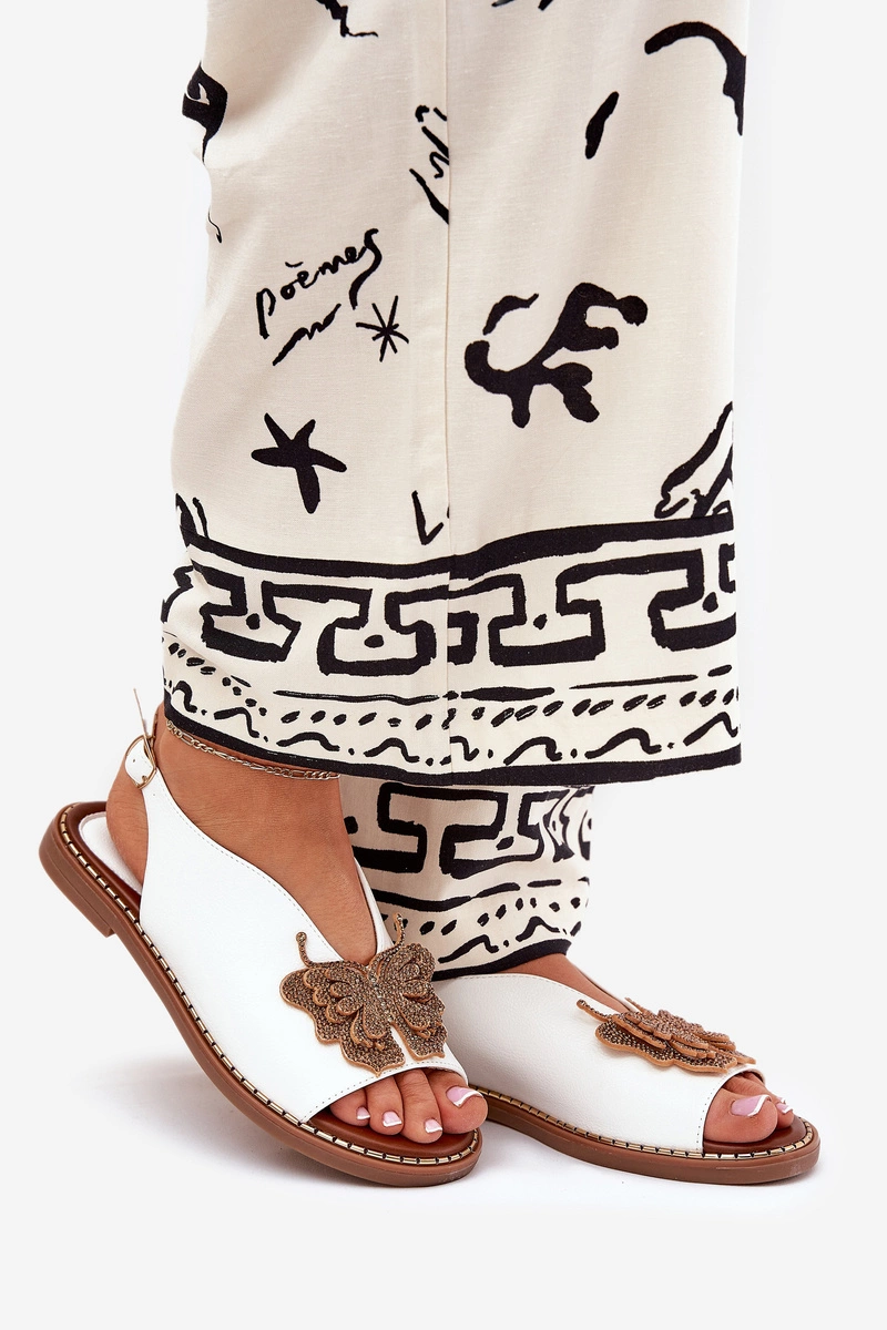 Sandały Damskie Na Płaskim Obcasie Z Ozdobą Białe Setorina