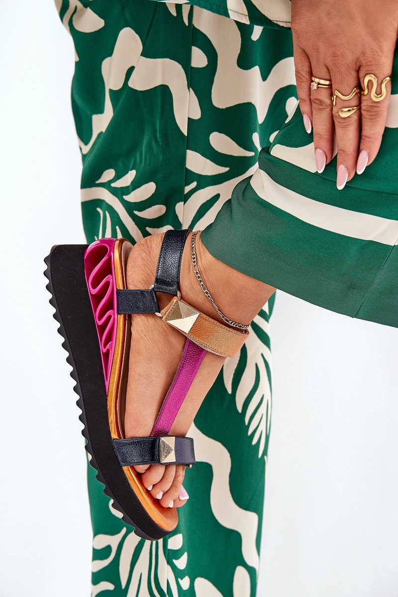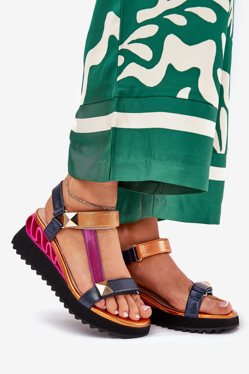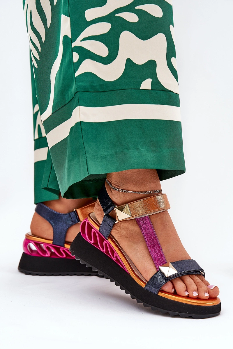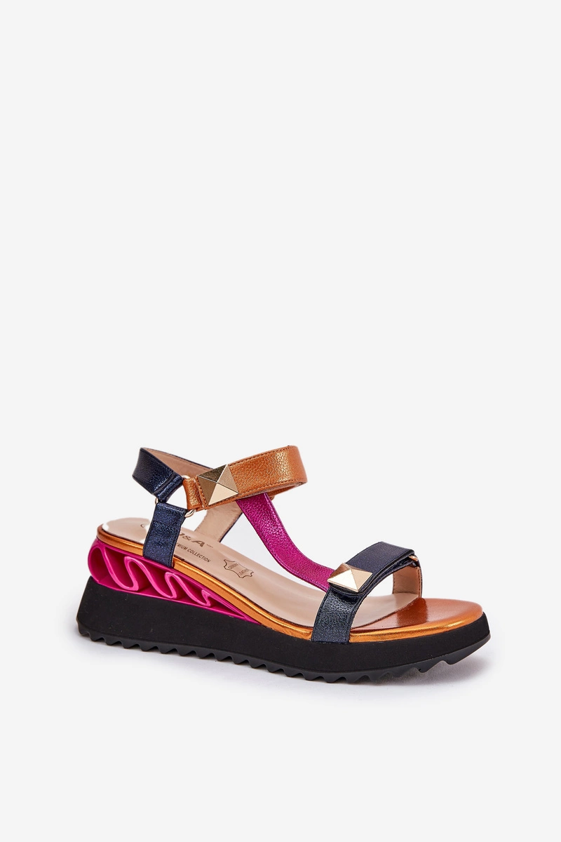 Skórzane Sandały Damskie Na Koturnie D&A CR51-135 Multikolor
