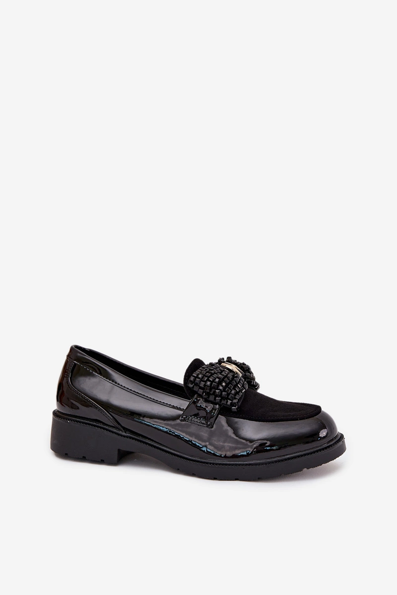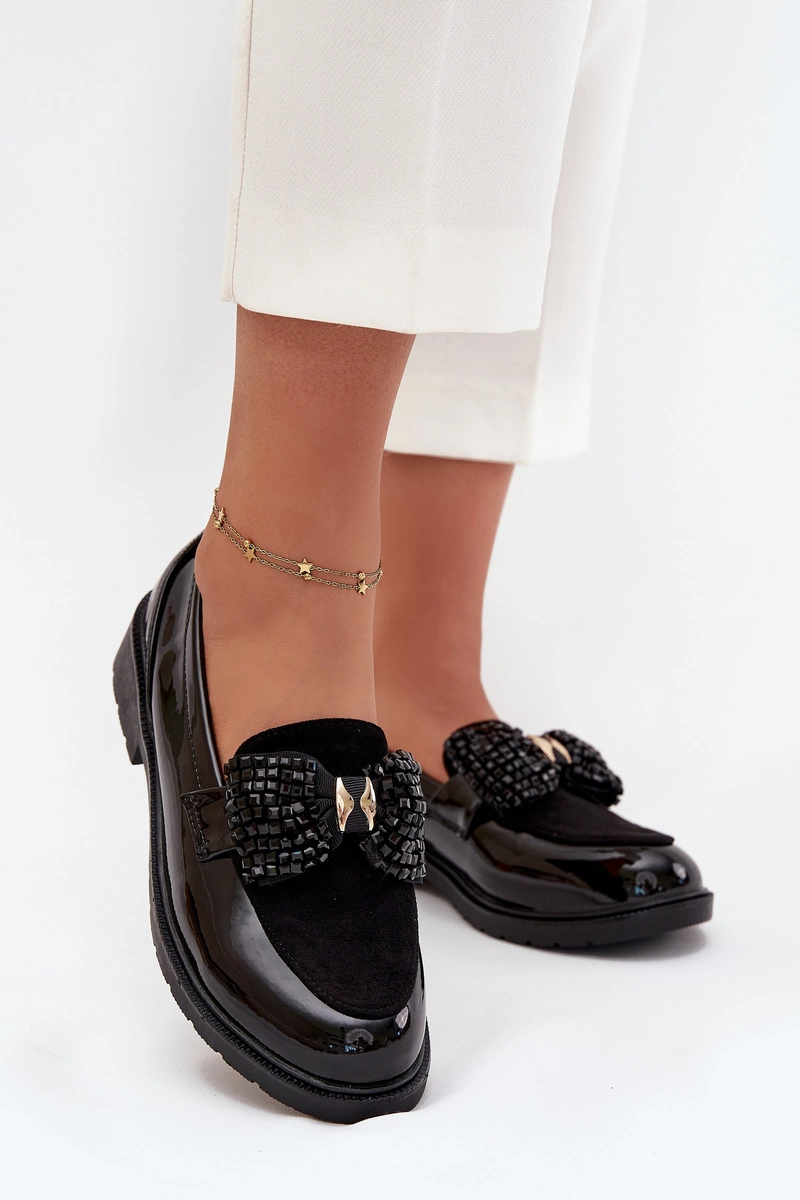 Lakierowane Mokasyny Damskie Z Kokardką S.Barski HY51-319 Czarne