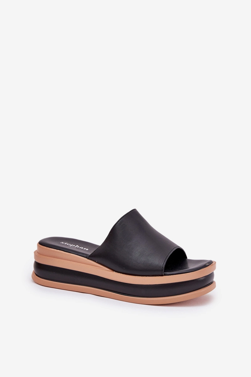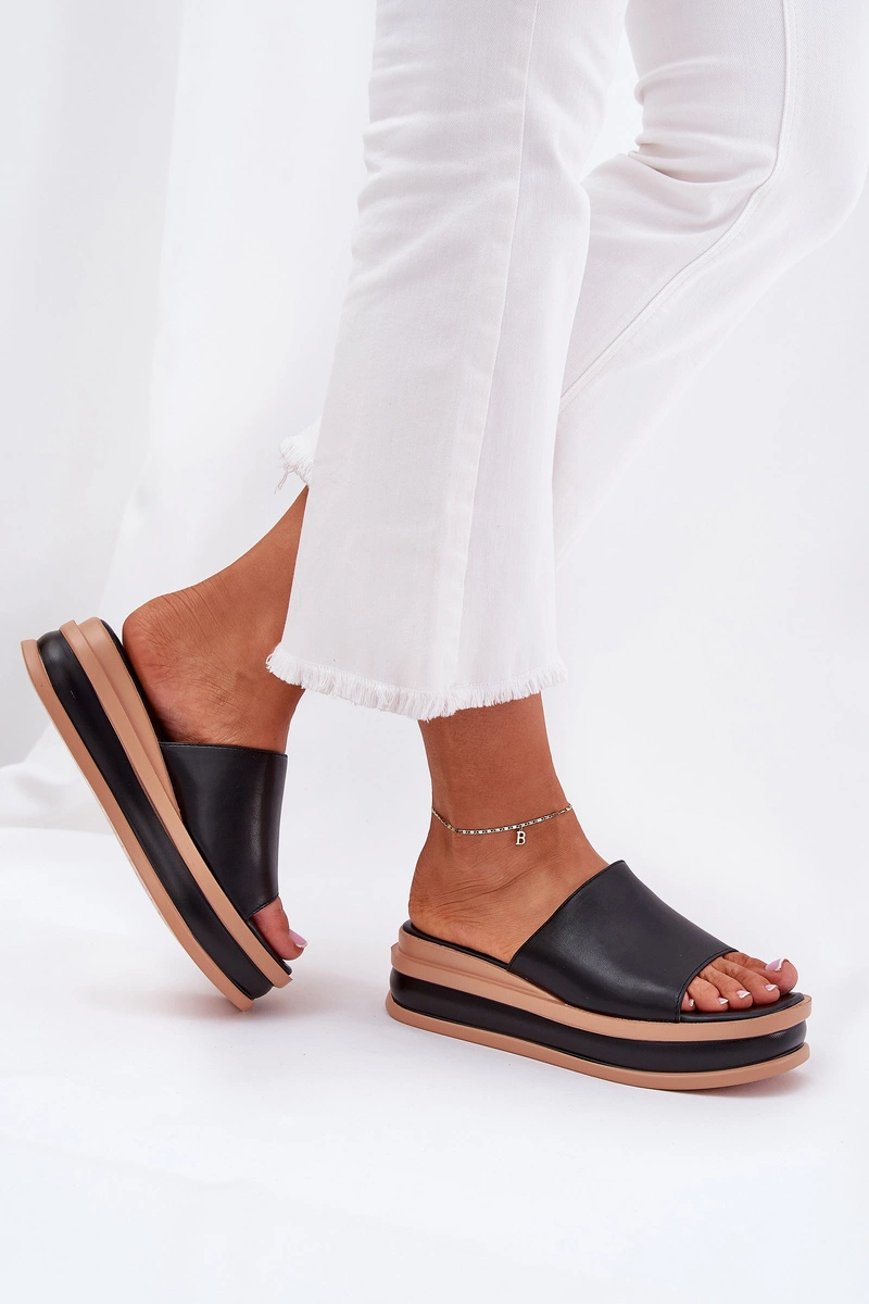 Klasyczne Klapki Damskie Na Platformie I Koturnie Czarne Florenis