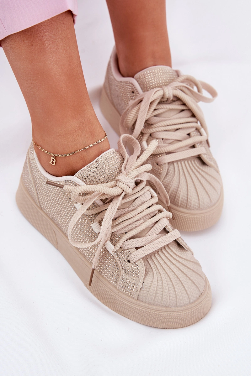 Damskie sneakersy na platformie stanowią idealną propozycję dla osób poszukujących modnego, a zarazem wygodnego obuwia. Zostały wykonane z ekologicznego zamszu. Piankowa wkładka, pokryta materiałem, zapewnia komfort nawet podczas długich spacerów. Cholewka ozdobiona licznymi cyrkoniami. Posiada zaokrąglone noski. To znakomity wybór do codziennych stylizacji! Przy wyborze rozmiaru prosimy kierować tabelą rozmiarów.