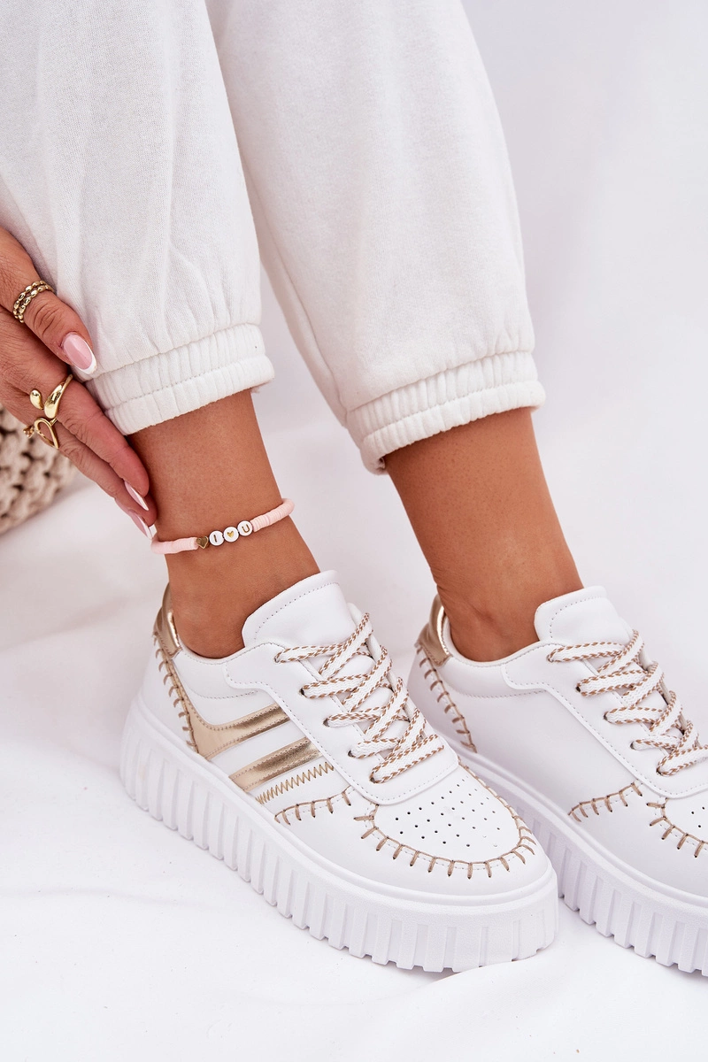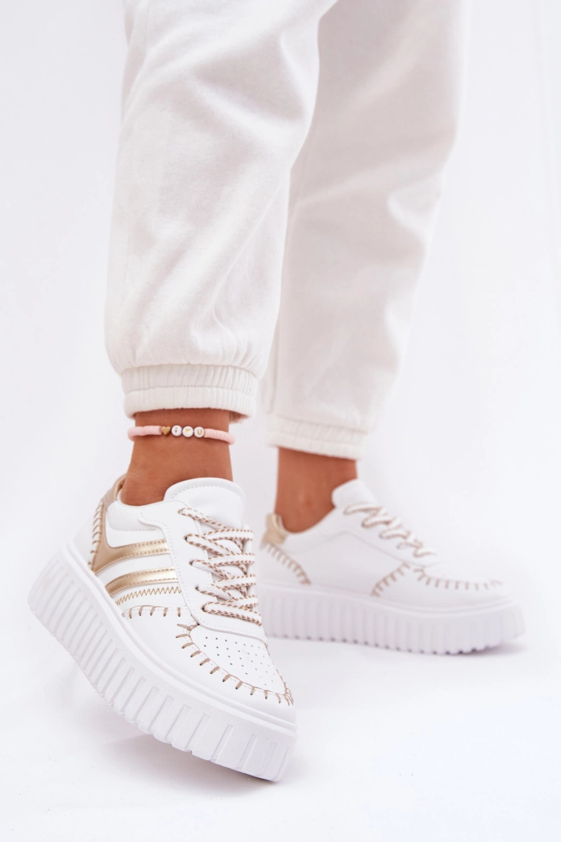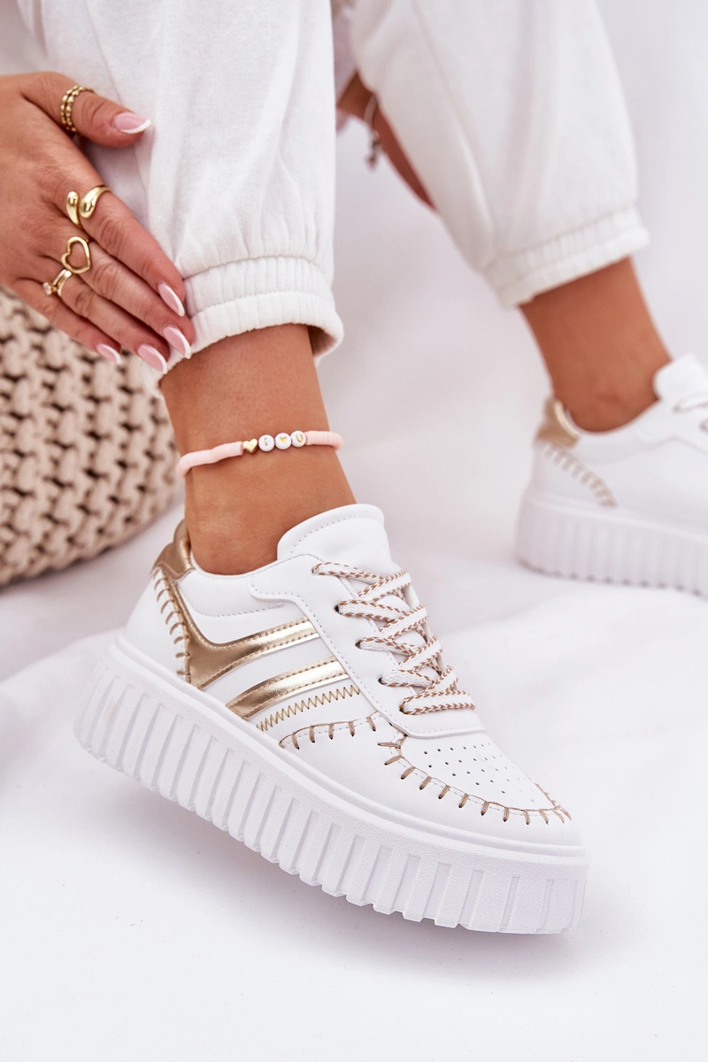 Sneakersy Damskie Na Platformie Złote Ofenale
