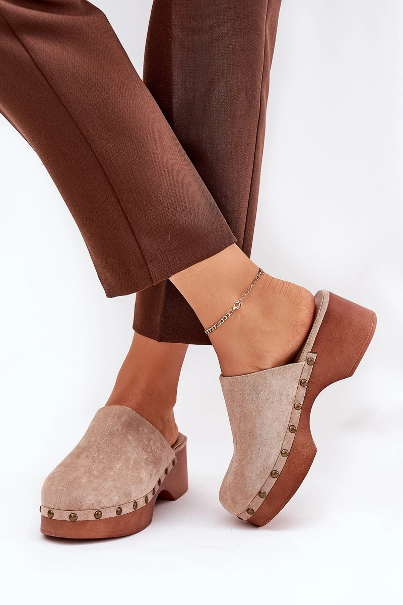 Chodaki Klapki Damskie Z Ćwiekami Eko Zamszowe Beżowe Ellason