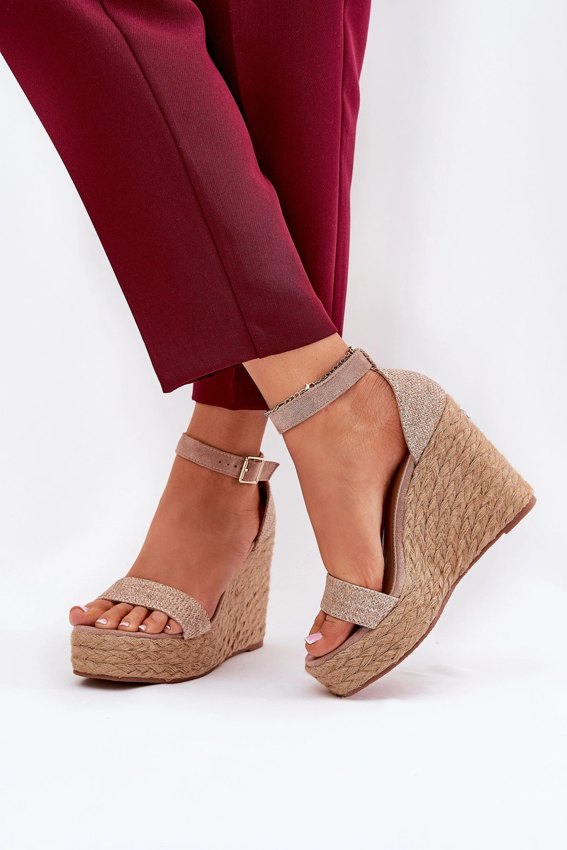 Sandały Damskie Na Koturnie Z Plecionką Khaki Adelio