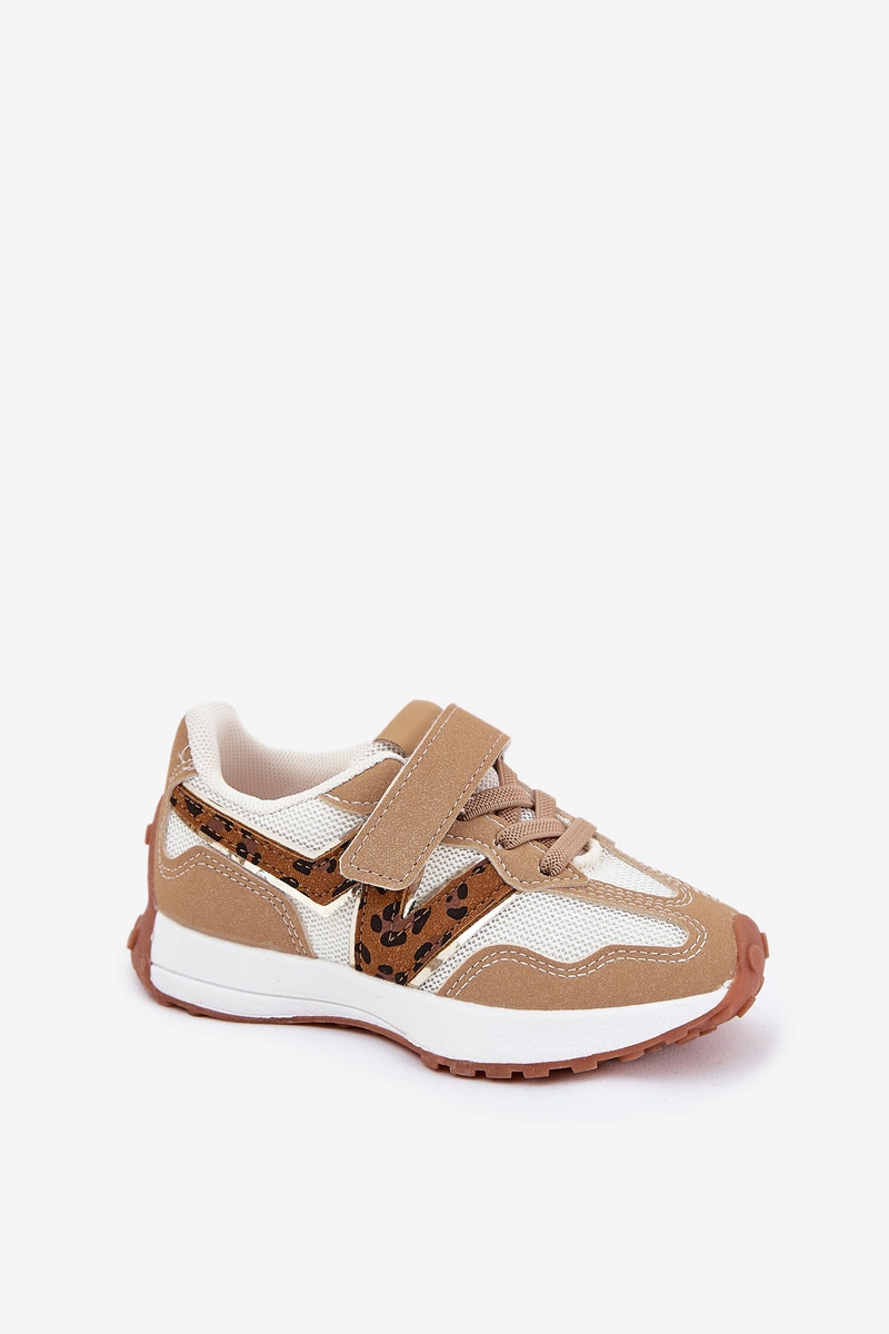 Sneakersy Dziecięce Na Rzep Panterka Ciemnobeżowe Tezzu