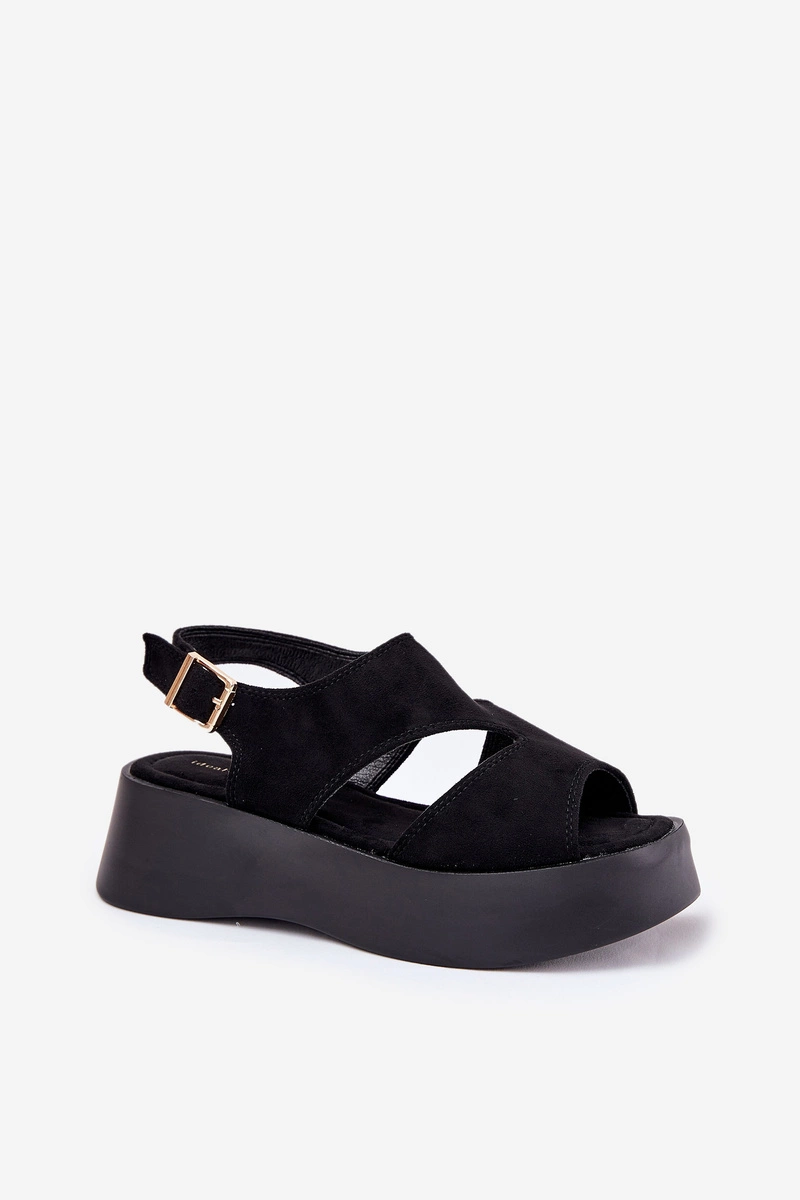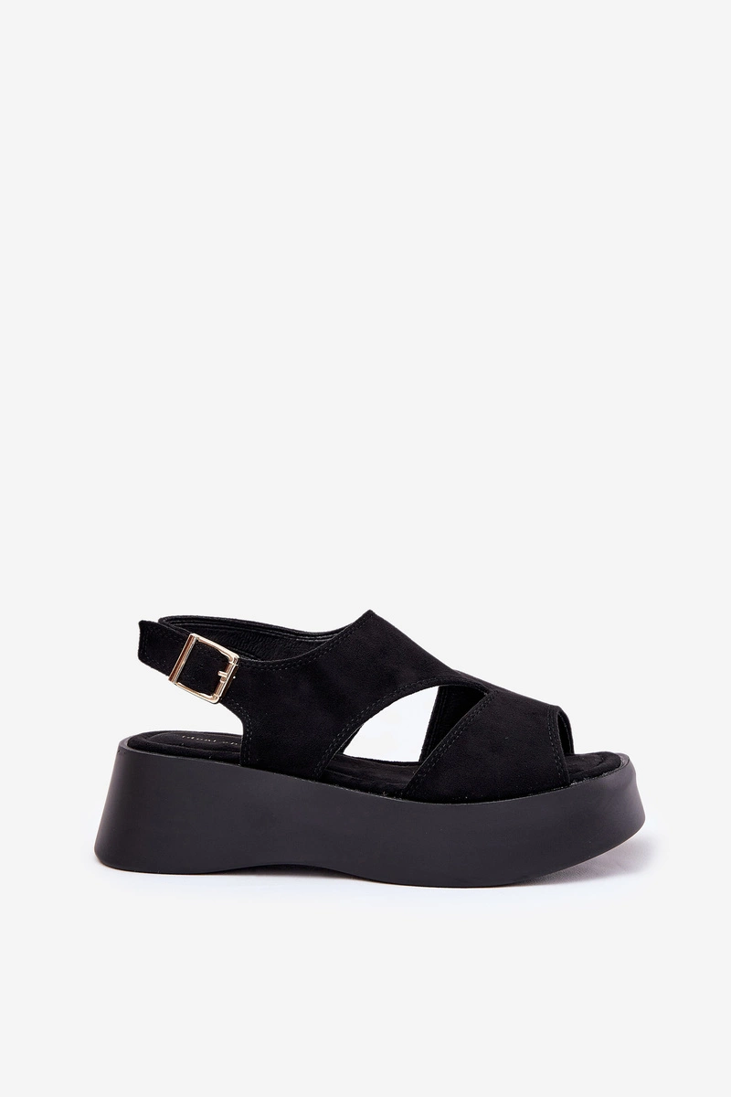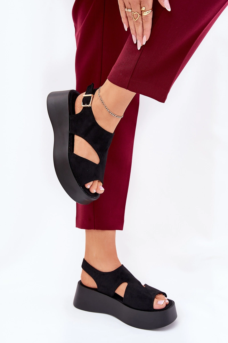 Sandały Damskie Na Platformie Eko Zamszowe Czarne Karonia