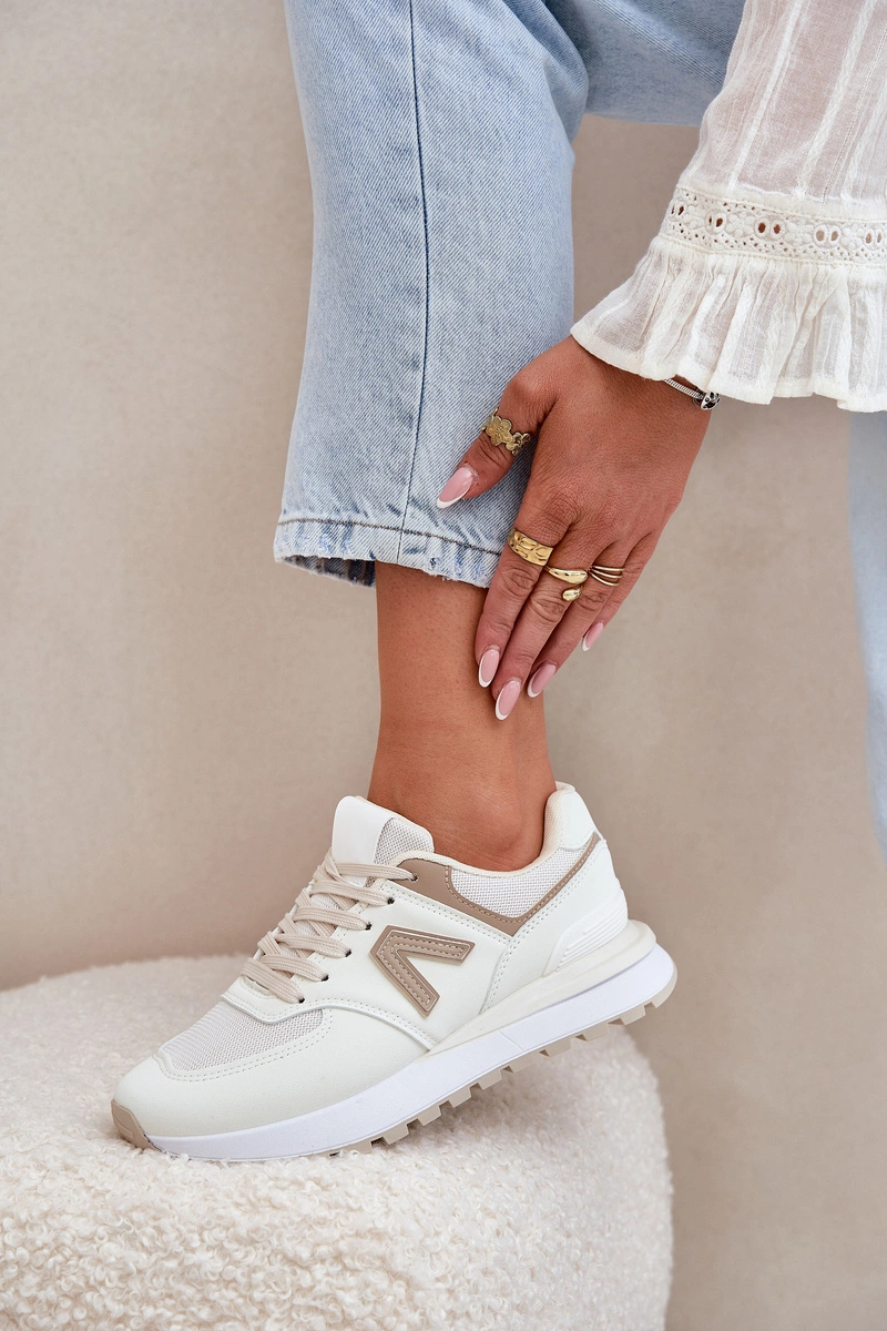 Buty Sportowe Damskie Z Eko Skóry Beżowe Berieta