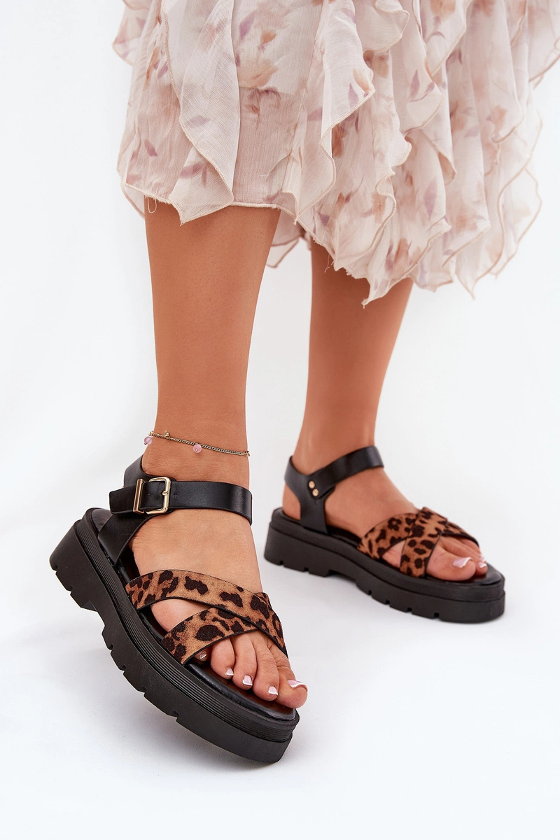 Sandały Damskie Na Platformie W Panterkę Brązowe Gevinniser