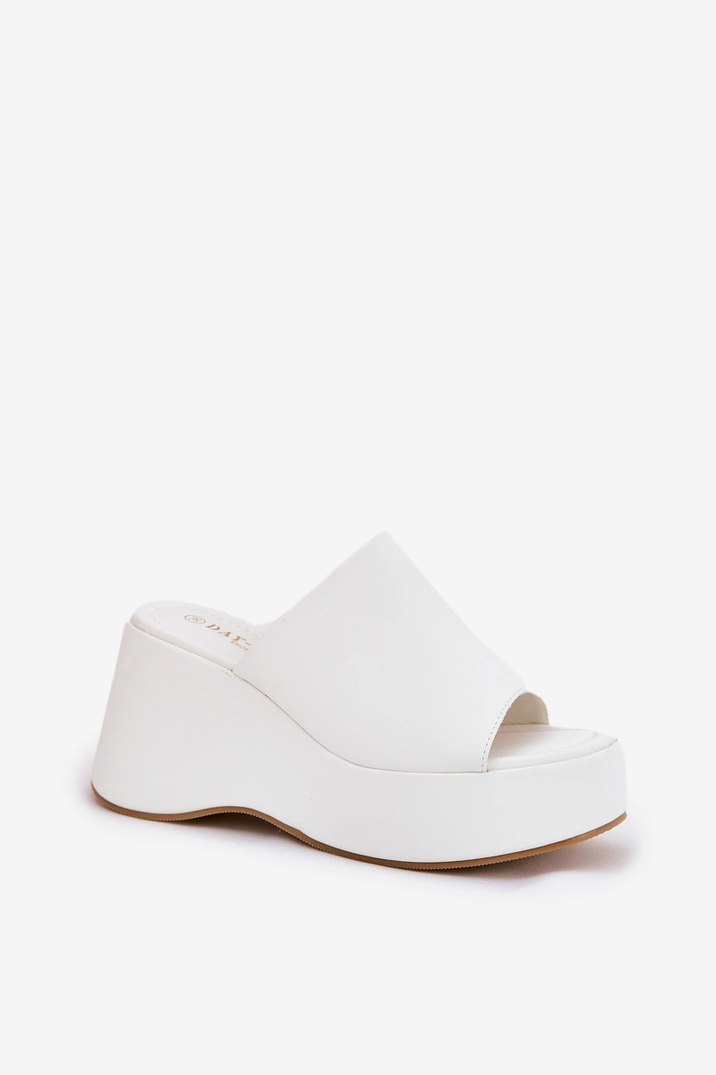 Eko Skórzane Klapki Damskie Na Platformie I Koturnie Białe Kisoffi