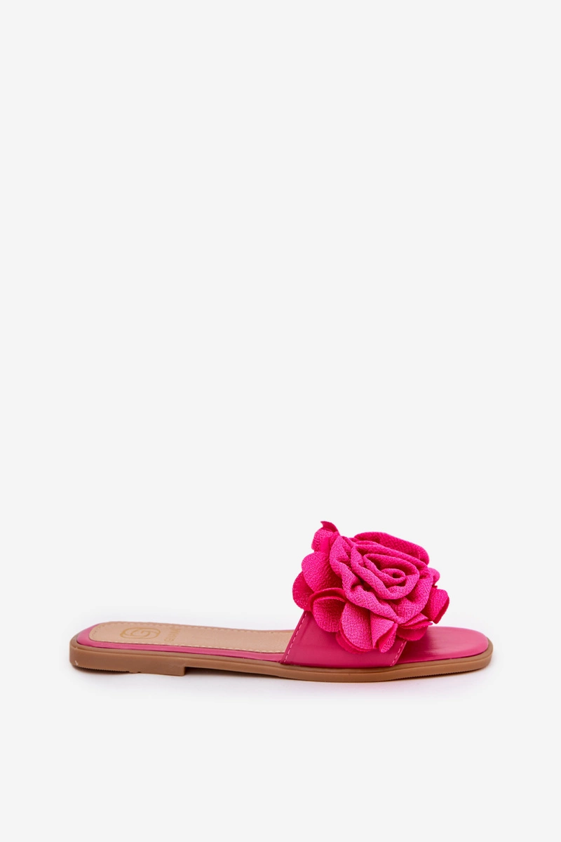Klapki Damskie Na Płaskim Obcasie Z Ozdobnymi Kwiatami Fuksja Misorsse