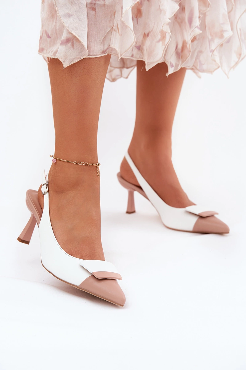 Eleganckie Szpilki Z Ozdobą Eko Skórzane Białe Ottoles