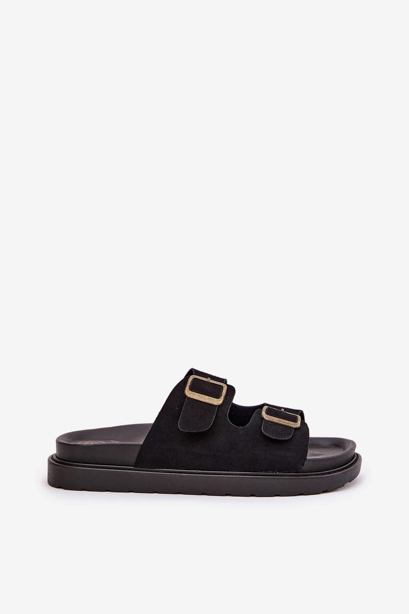 Klapki Damskie Na Platformie Z Klamrami Czarne Simbes