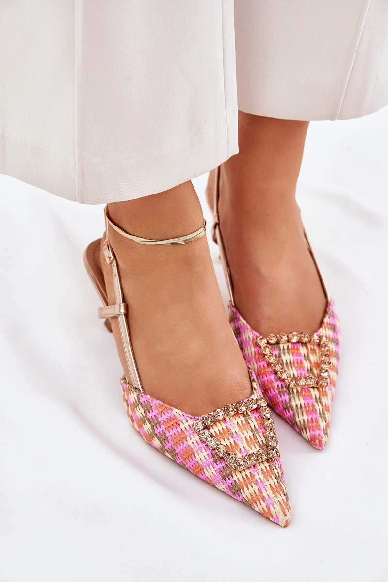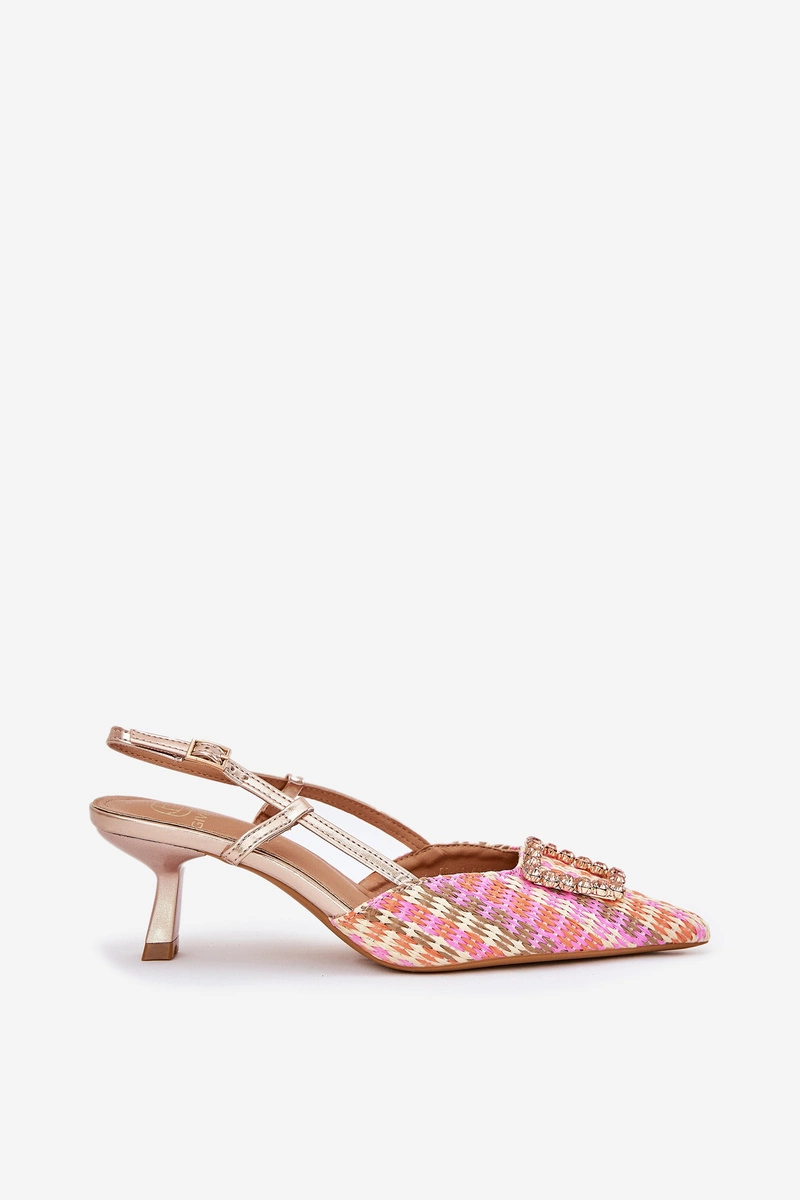 Szpilki damskie z odkrytą piętą, które zachwycają swoim wyglądem. Model z noskami w szpic optycznie wydłuża nogi, a ozdoba z przodu dodaje im wyjątkowego uroku. Zapinane na regulowany pasek ze sprzączką, zapewniają wygodę i doskonałe dopasowanie. Idealny wybór na wieczorne wyjścia i wyjątkowe okazje. Przy wyborze rozmiaru prosimy sugerować się tabelą rozmiarów.