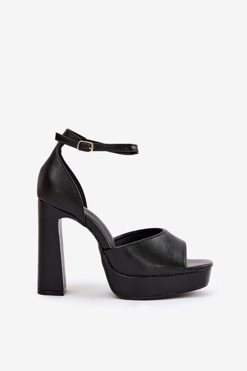 Sandały Damskie Na Słupku I Platformie Eko Skórzane Czarne Lomman