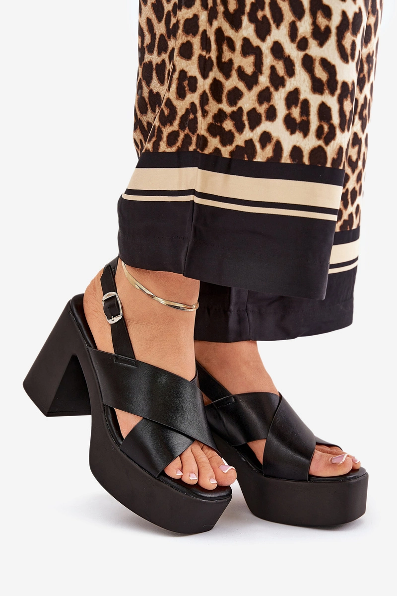 Sandały Damskie Na Słupku I Platformie Z Eko Skóry Czarne Annavin