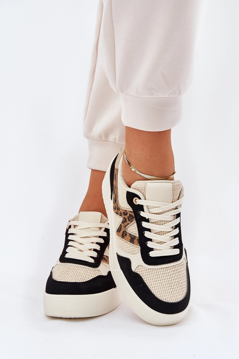 Buty Sportowe Damskie Na Platformie Panterka Czarne Lorori