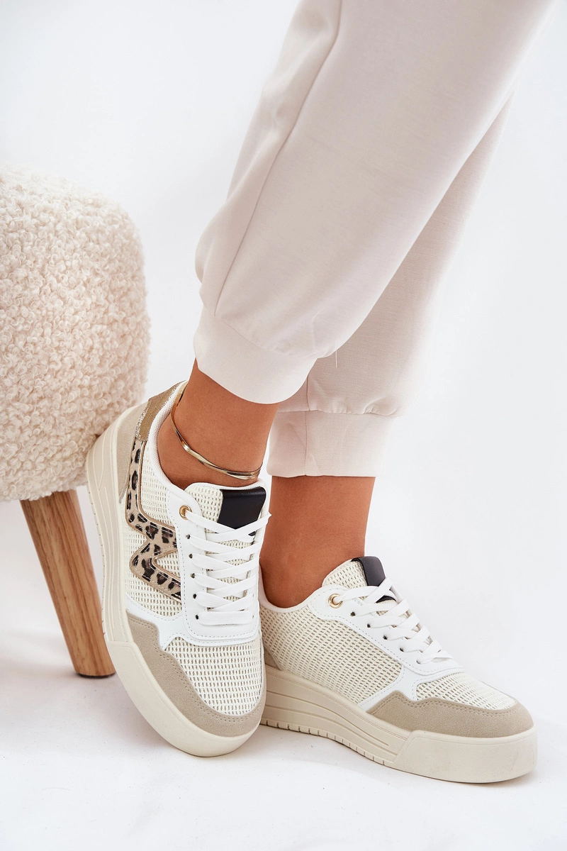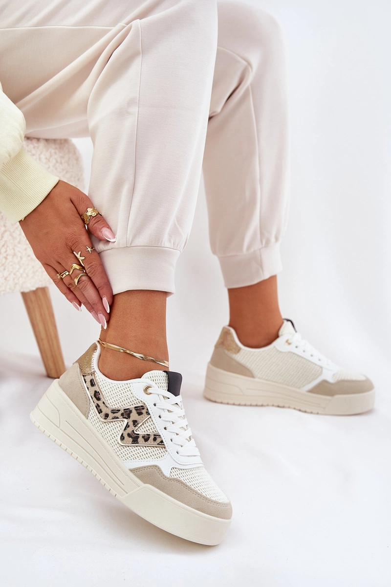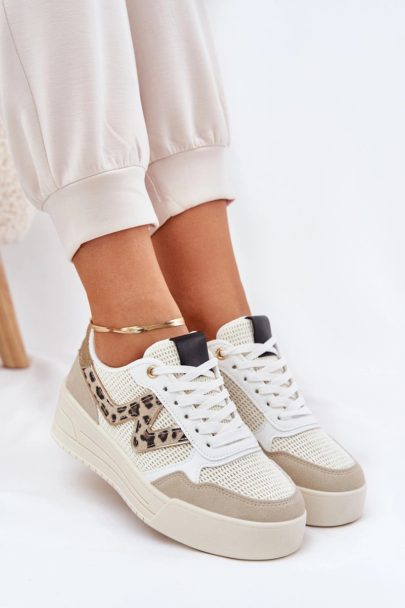 Buty Sportowe Damskie Na Platformie Panterka Beżowe Lorori