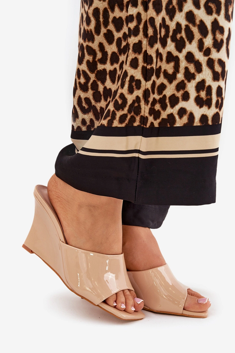 Lakierowane Klapki Damskie Na Koturnie Nude Nelithin