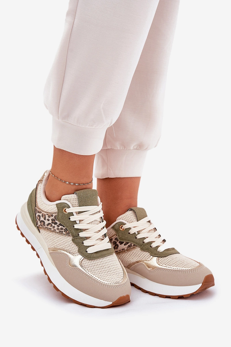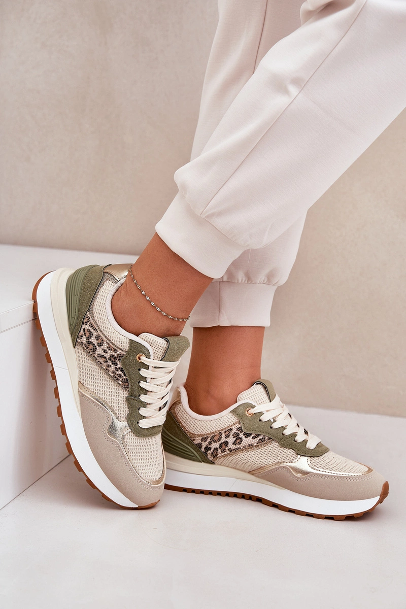 Buty Sportowe Damskie Z Panterką Na Platformie Zielone Davinara