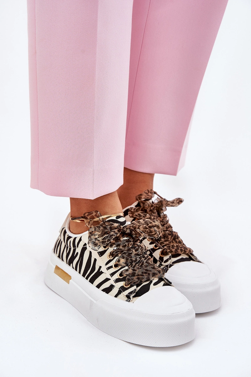 Trampki Damskie Na Masywnej Platformie Z Ozdobnym Sznurowaniem Zebra Czarno-Beżowe Zidora