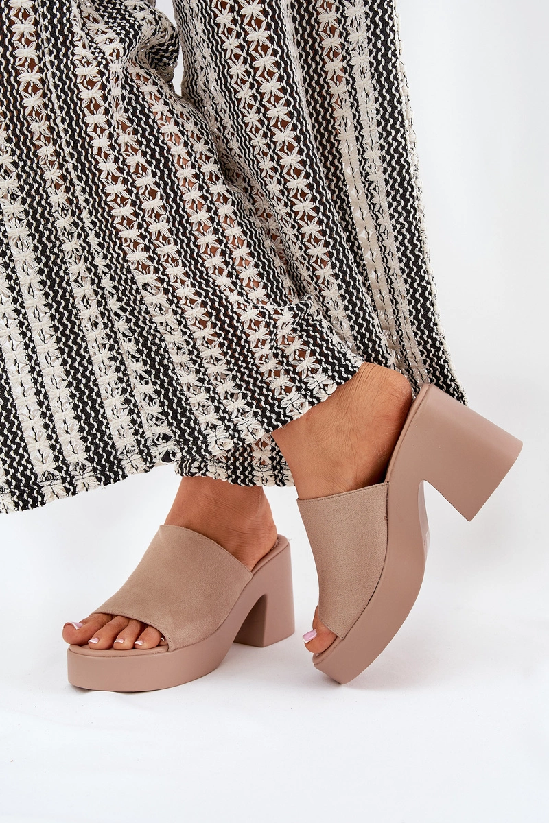 Klapki Damskie Na Słupku I Platformie Khaki Omeisa