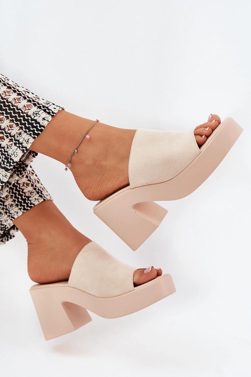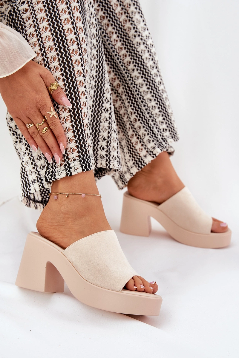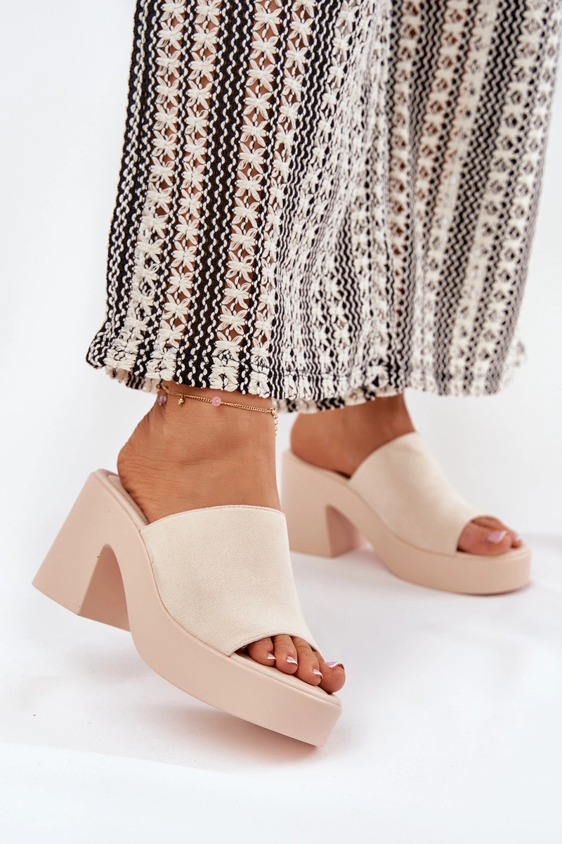 Klapki Damskie Na Słupku I Platformie Beżowe Omeisa