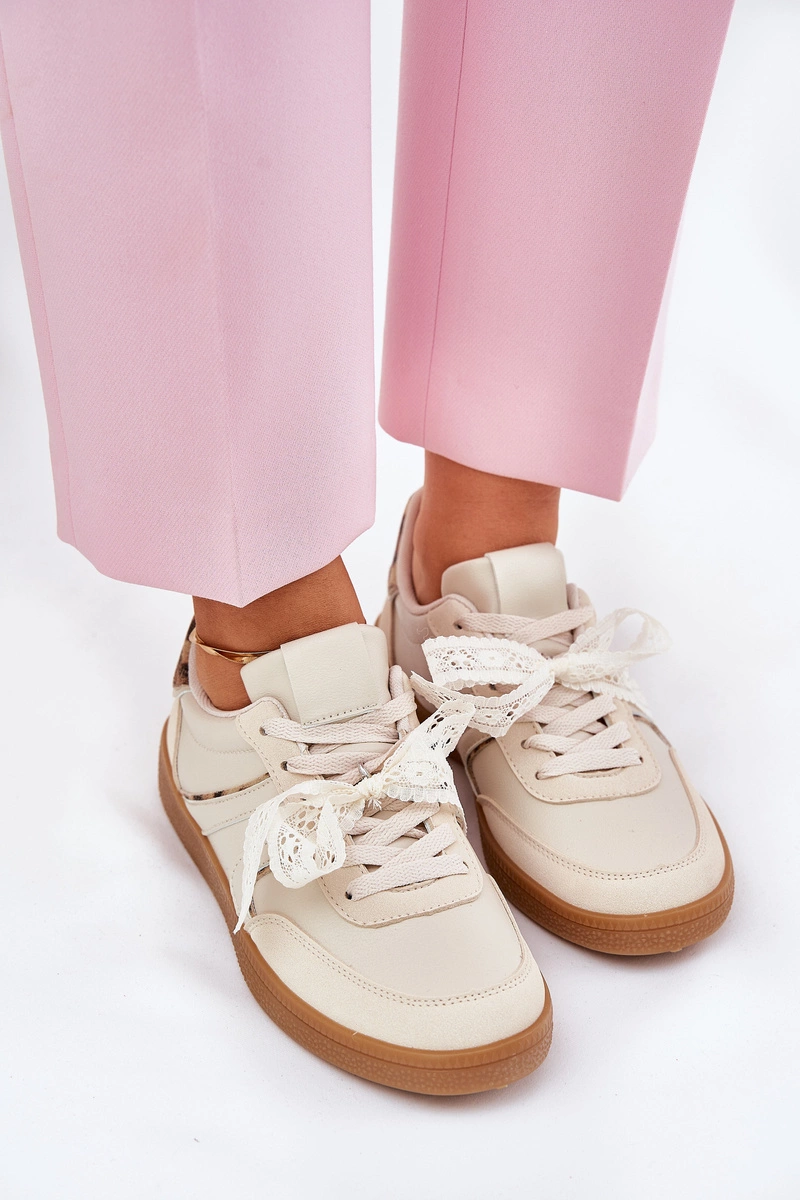 Niskie Sneakersy Damskie Z Koronką Panterka Beżowe Zielle