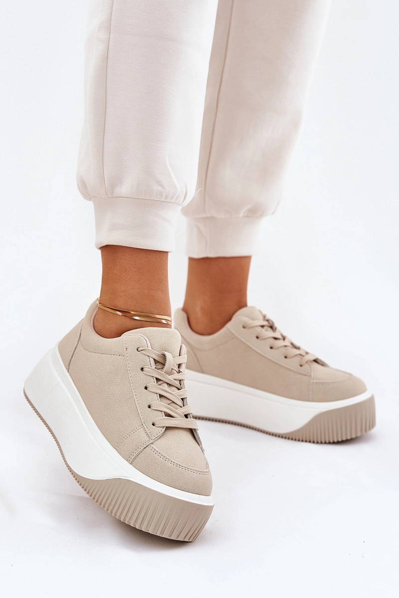 Sneakersy Na Masywnej Platformie Gładkie Beżowe Tirvanis