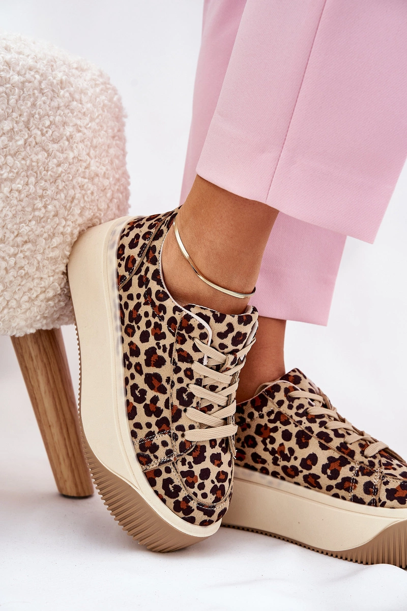 Sneakersy Na Masywnej Platformie Panterka Brązowe Tirvanis