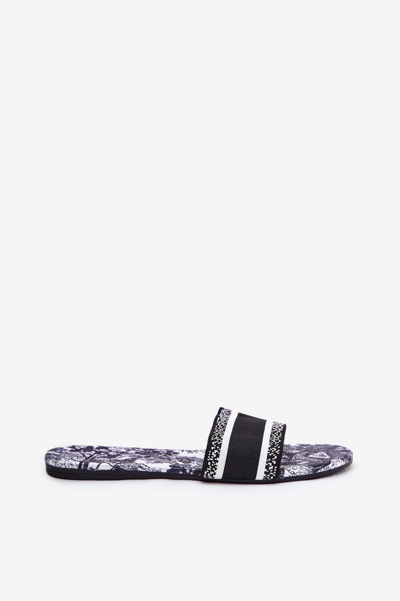 Wzorzyste Płaskie Klapki Damskie Czarne Leysi