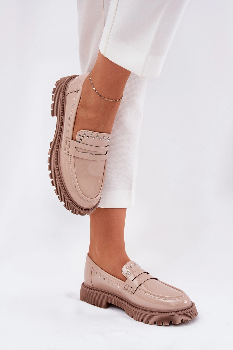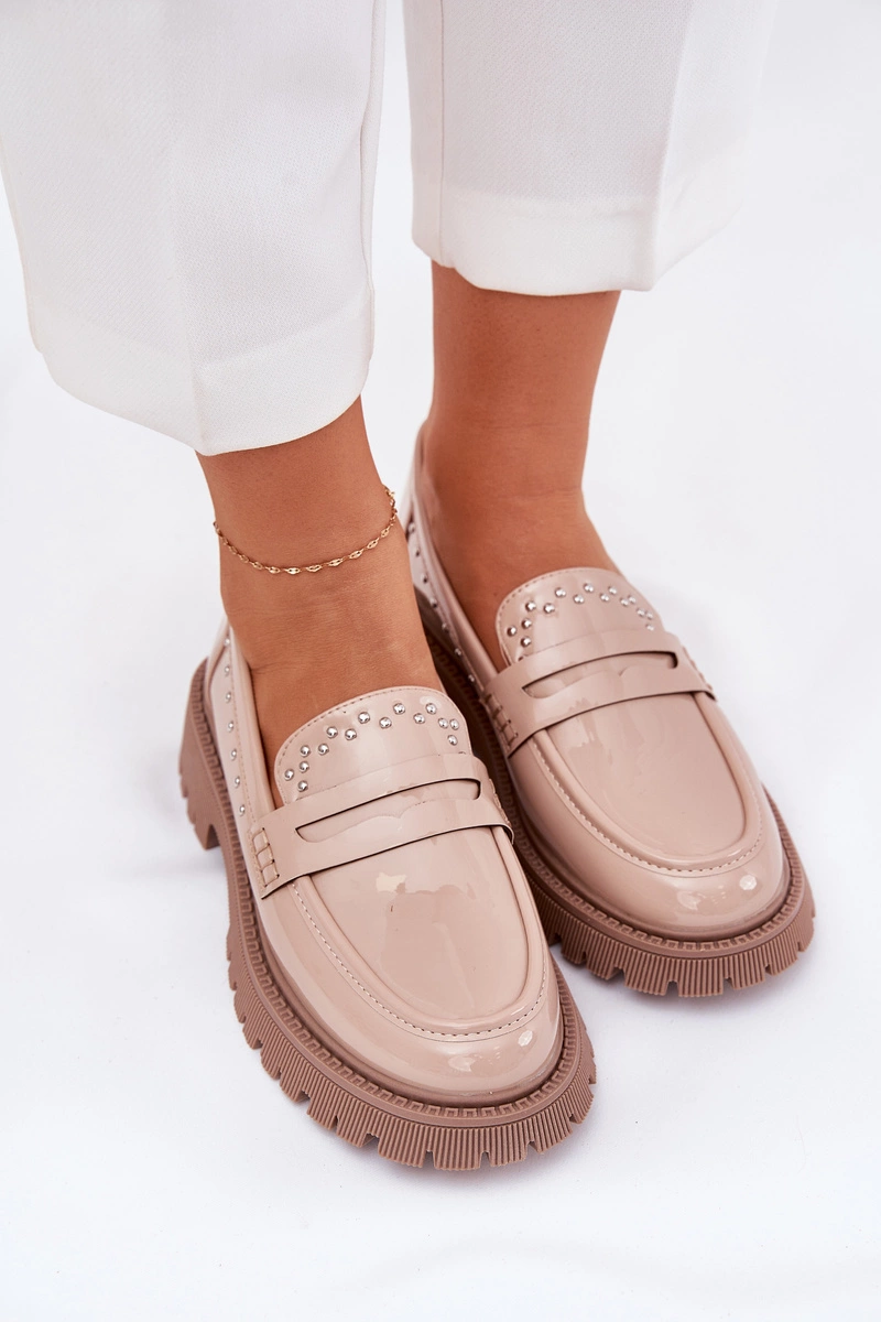 Mokasyny Damskie Lakierowane Ze Zdobieniem Beżowe Nallae