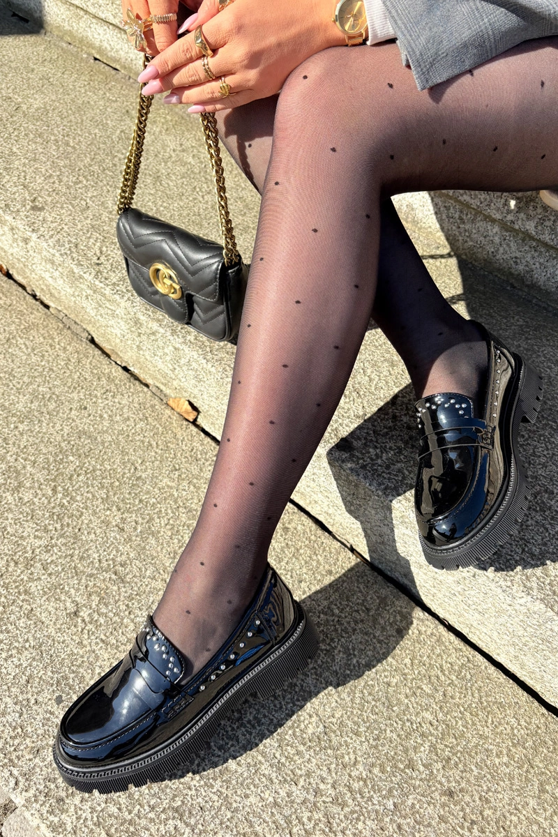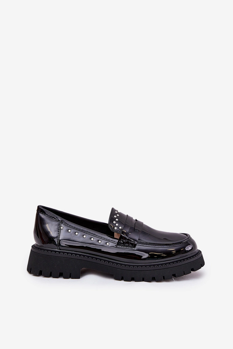 Mokasyny Damskie Lakierowane Ze Zdobieniem Czarne Nallae