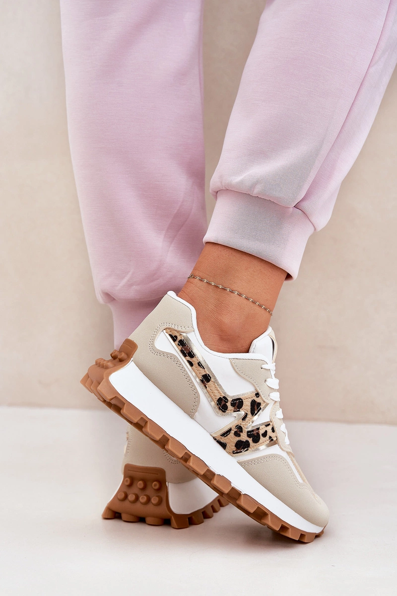Sneakersy Buty Sportowe Damskie Panterka Beżowe Kalelia