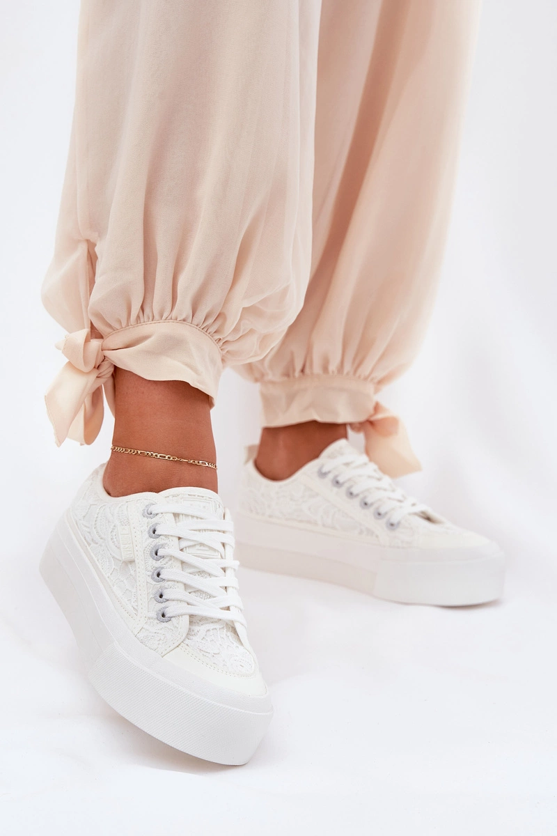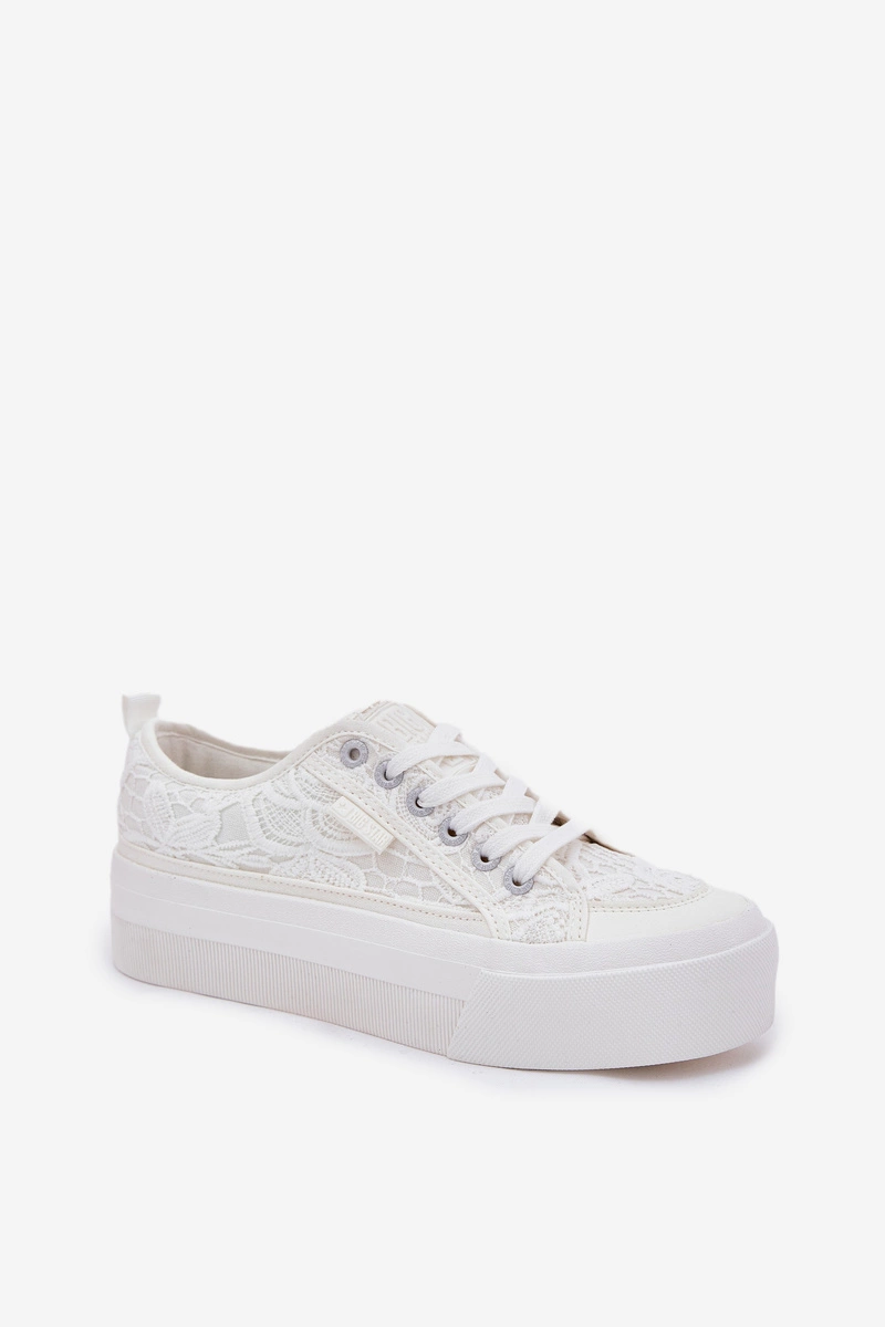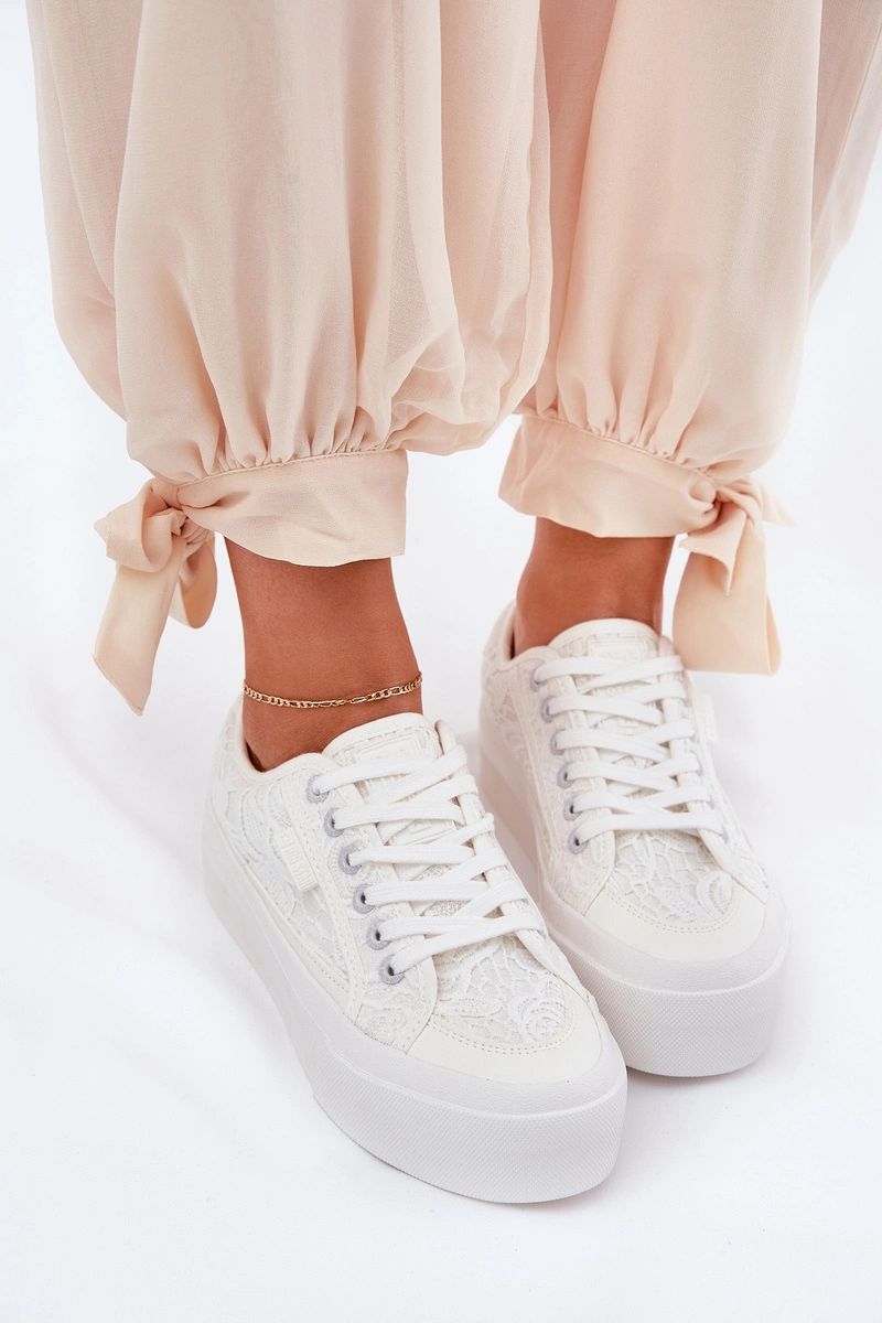 Trampki od marki Big Star, które wyróżniają się koronkową cholewką, dodającą im lekkiego i dziewczęcego charakteru. Osadzone na masywnej platformie, zapewniają komfort i stabilność, jednocześnie podkreślając nowoczesny wygląd. Zaokrąglone noski gwarantują wygodę przez cały dzień. Te trampki będą doskonałym wyborem do codziennych stylizacji, łącząc wygodę z modnym wyglądem. Przy wyborze rozmiaru prosimy sugerować się poniższą tabelą rozmiarów.