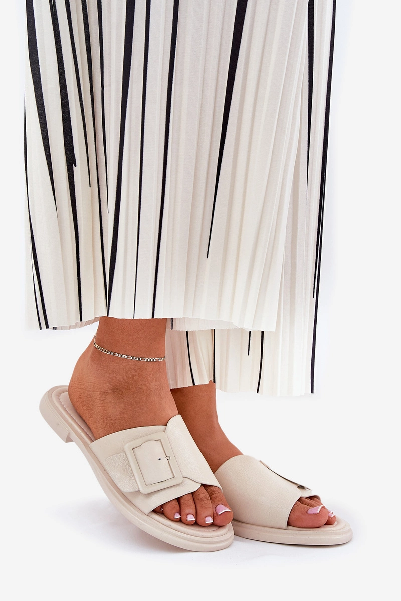 Skórzane Klapki Damskie Z Klamrą D&A SJ2302-01 Beżowe